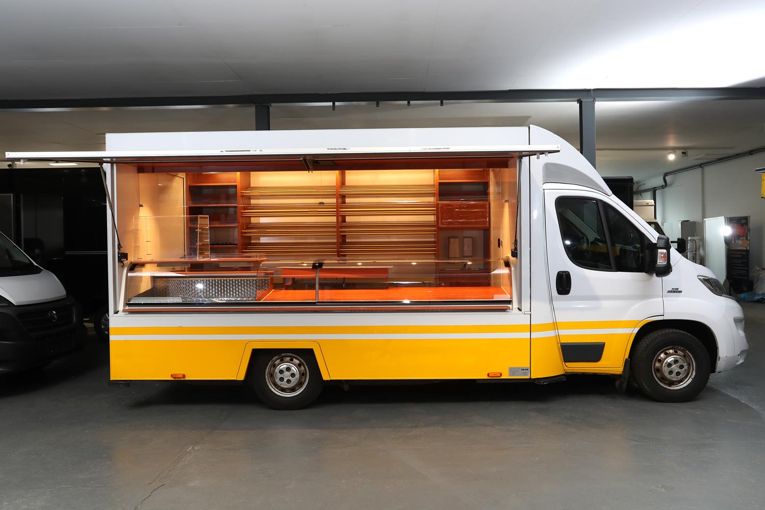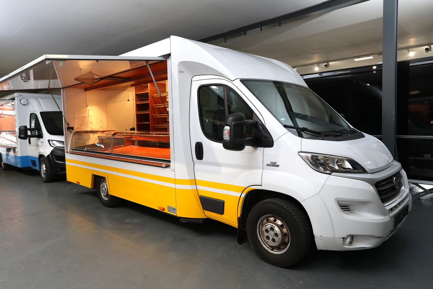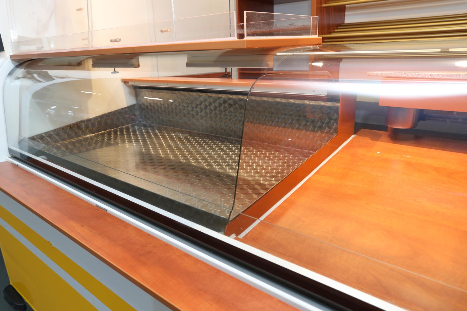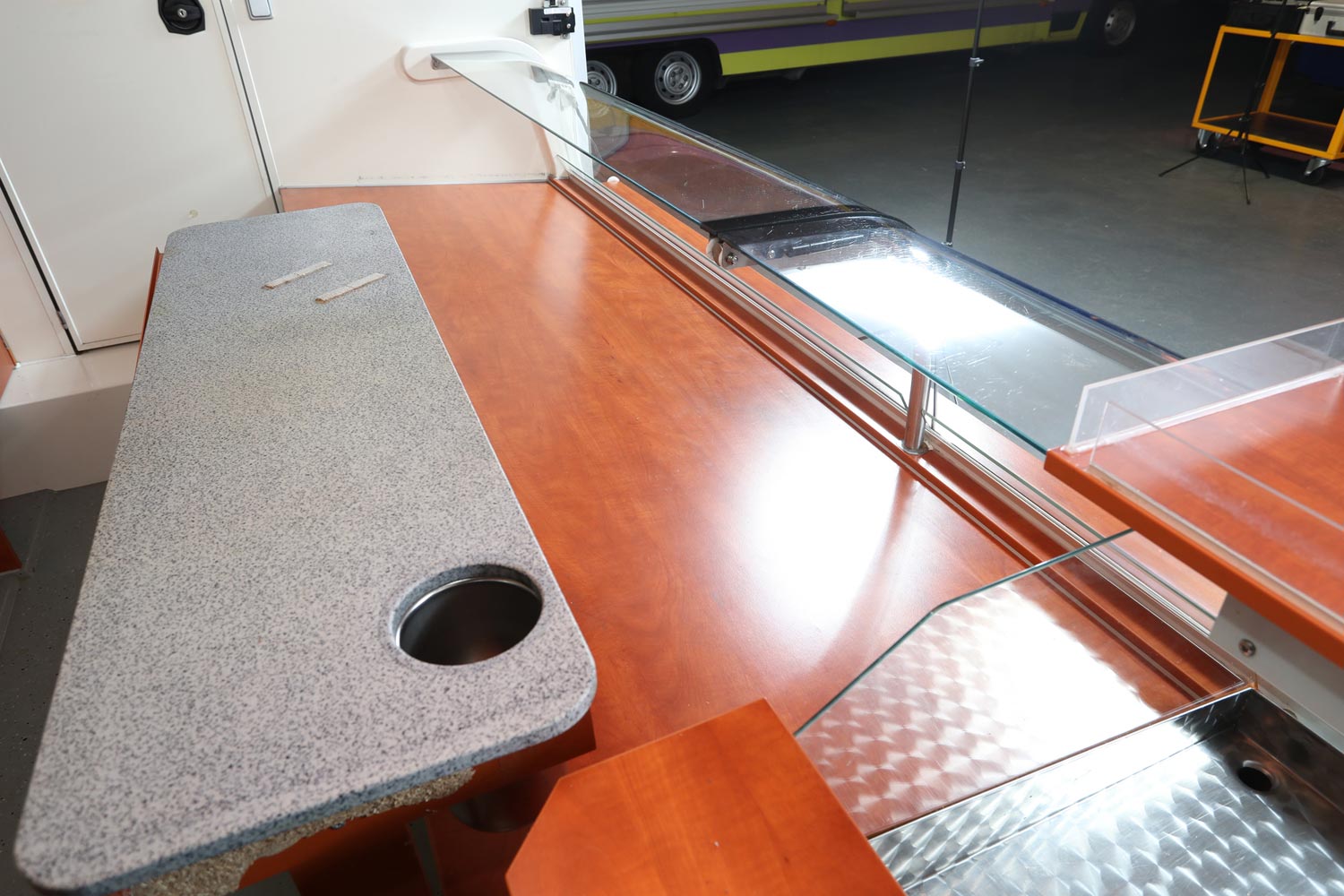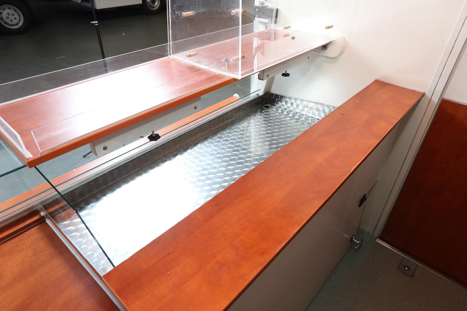 Kühltheke mit Speicherkühlung und extra Kühlfach für 6 Kuchenbleche 600 x 400 m, Polyesterfußboden, Rückfahrkamera und Radio