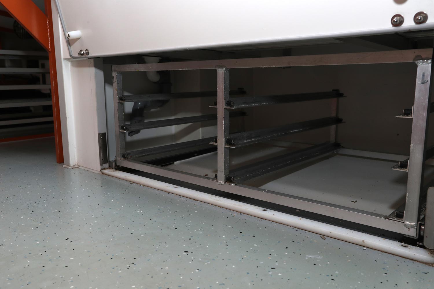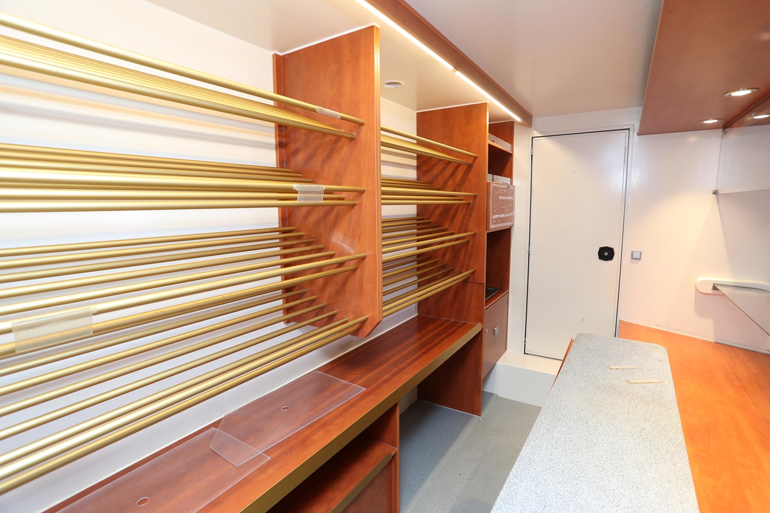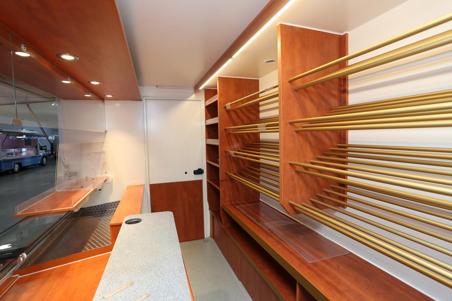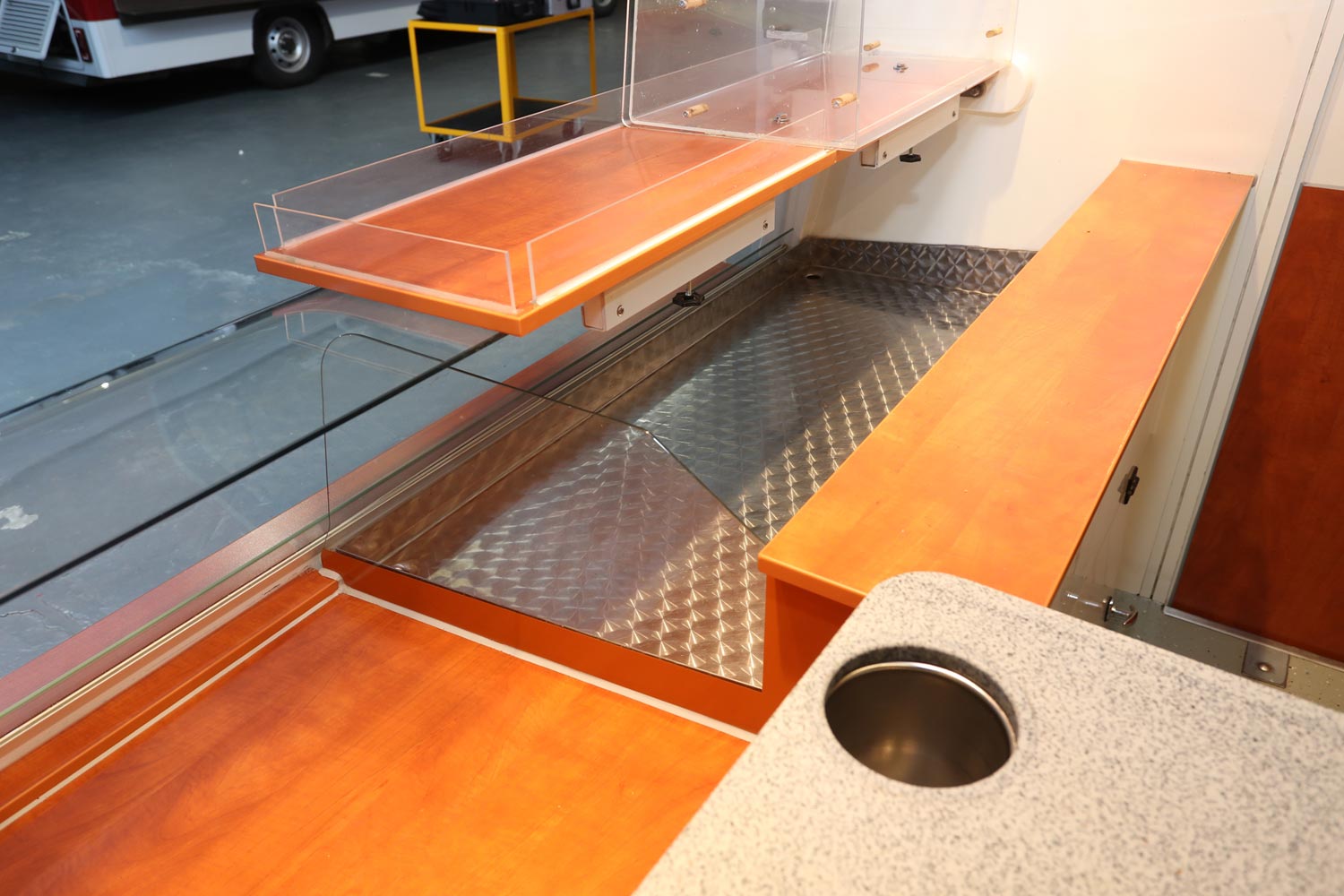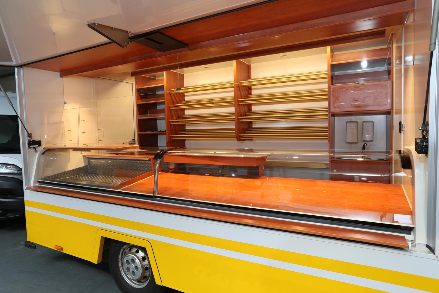Kühltheke mit Speicherkühlung und extra Kühlfach für 6 Kuchenbleche 600 x 400 m, Polyesterfußboden, Rückfahrkamera und Radio