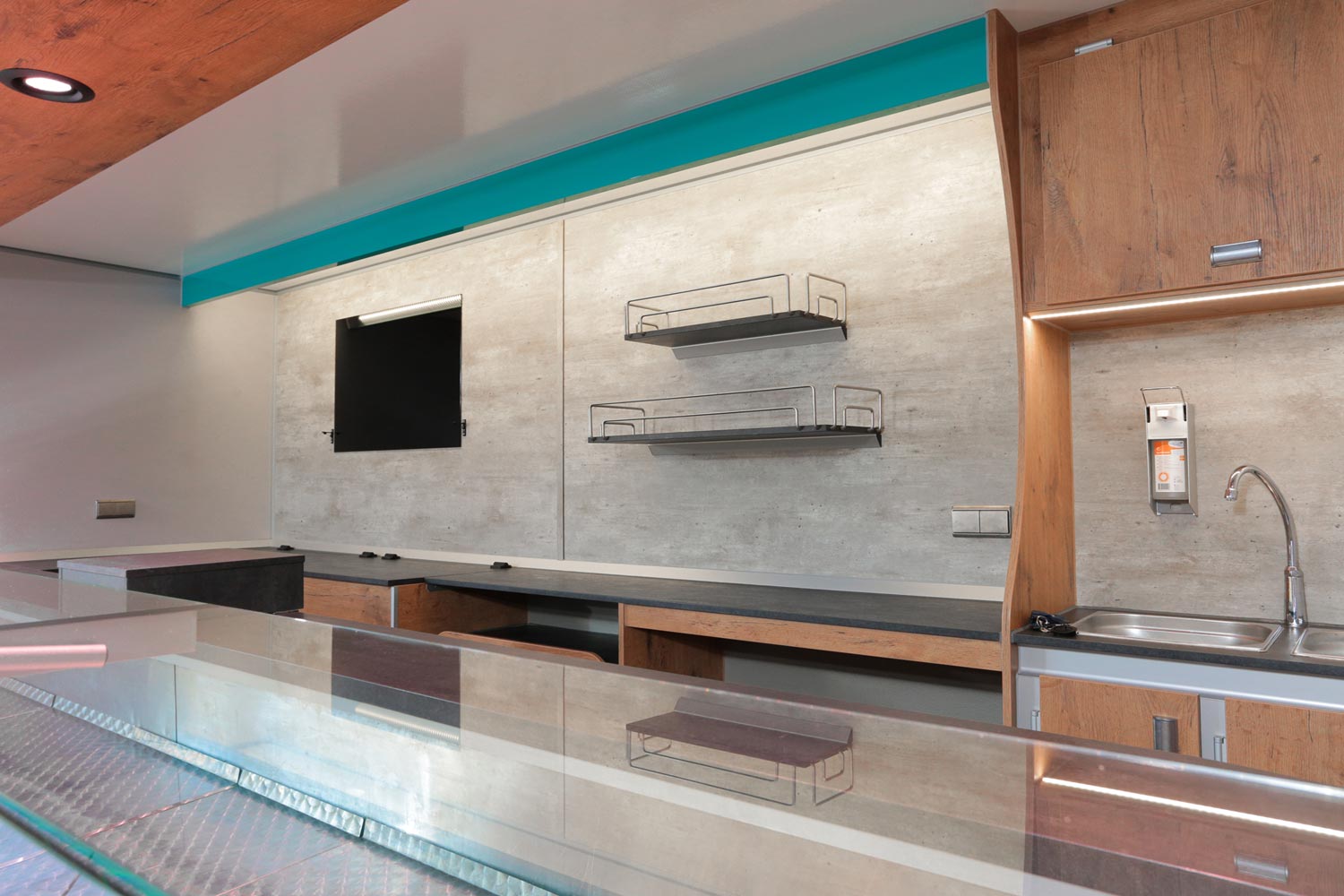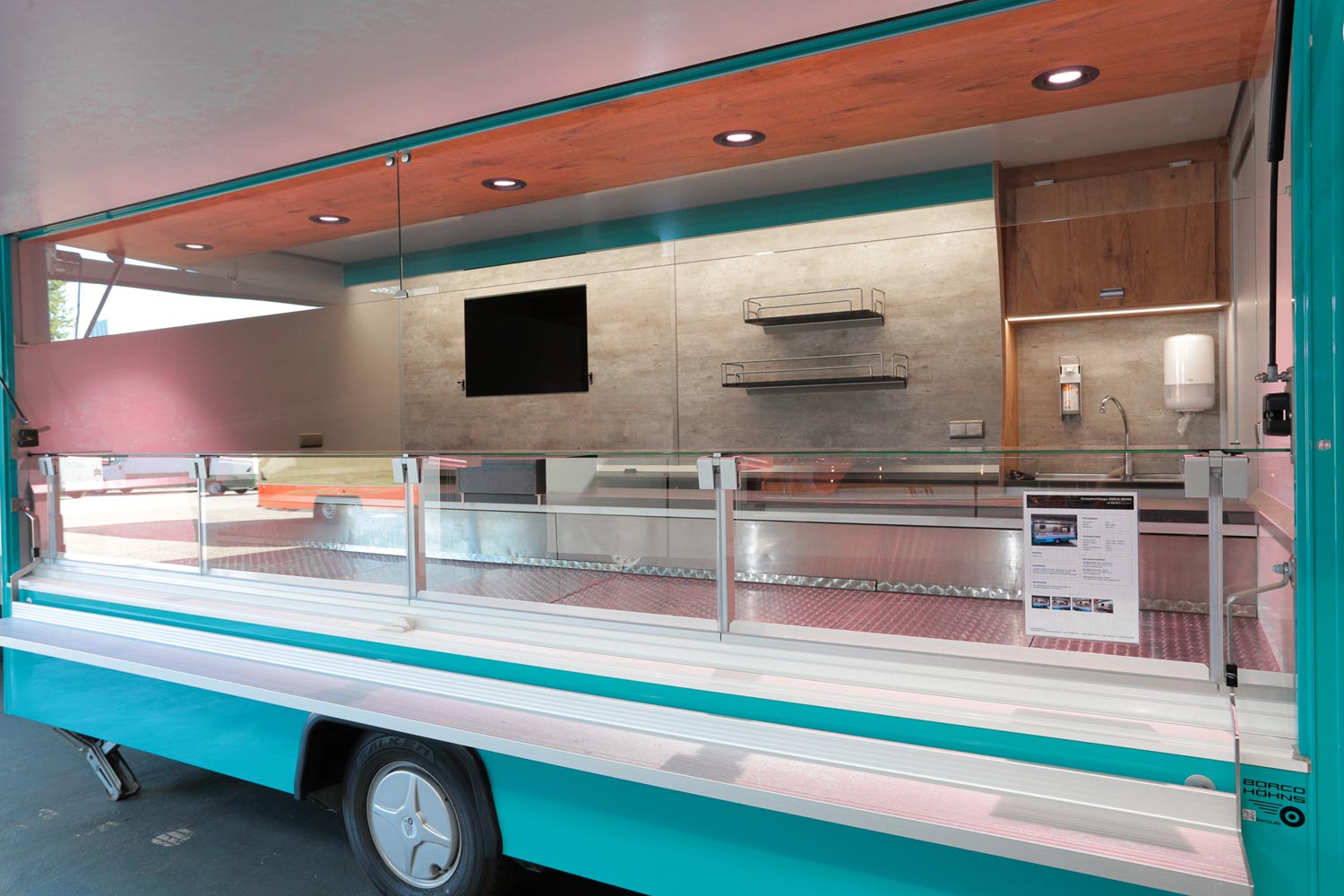 Sehr gepflegter Borco Höhns Fischverkaufsanhänger Kühltheke mit senkrechter Verglasung, 670 mm Thekenauslage und verstärkter Kühlleistung 32° sowie Kühltruhe