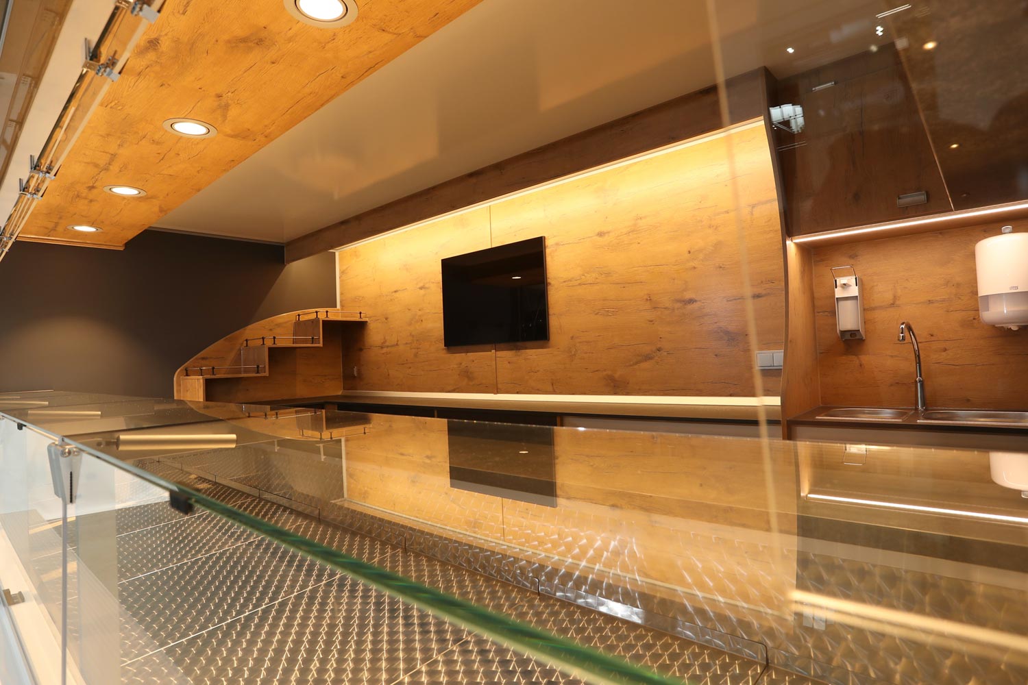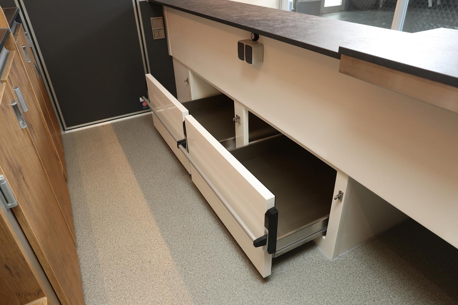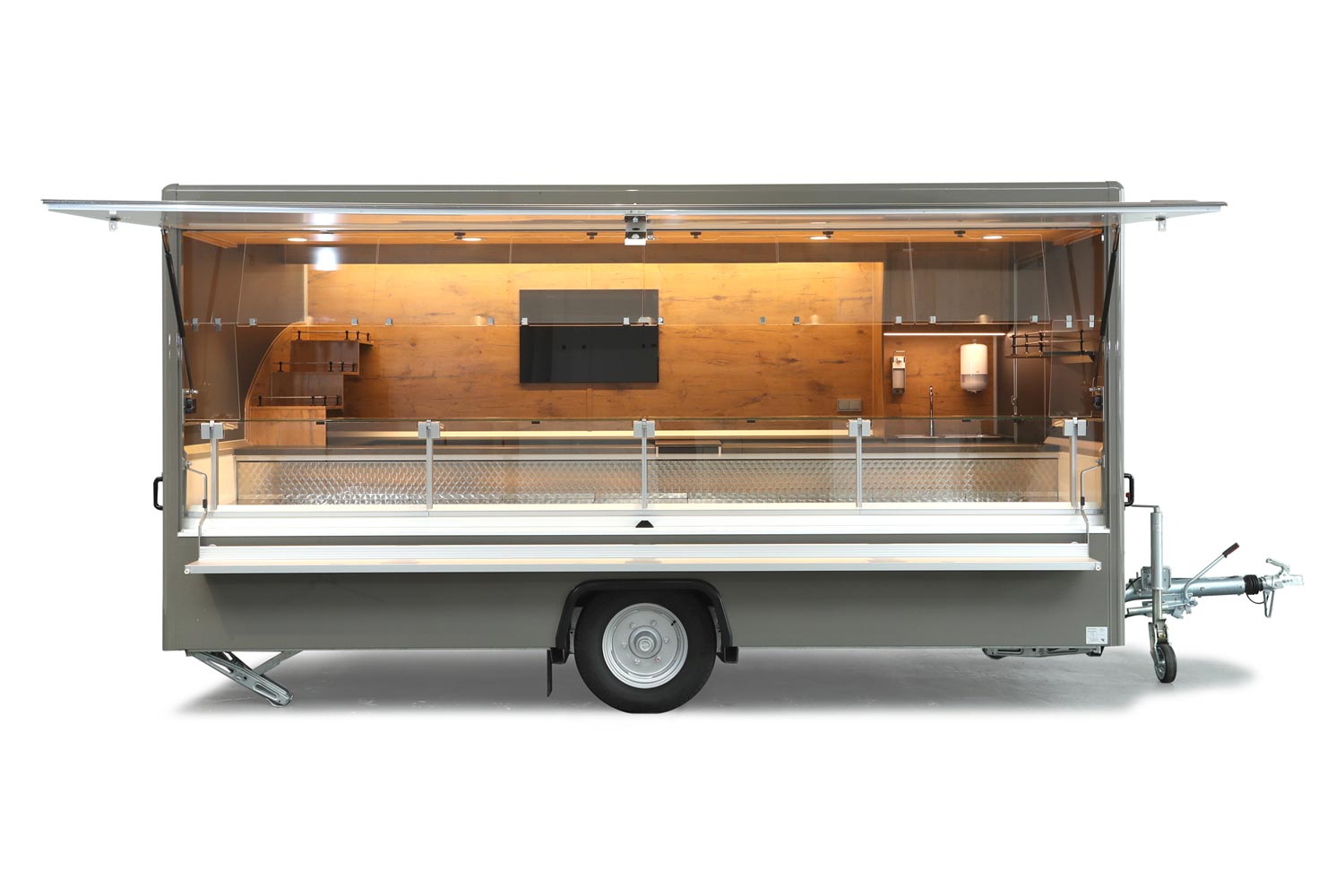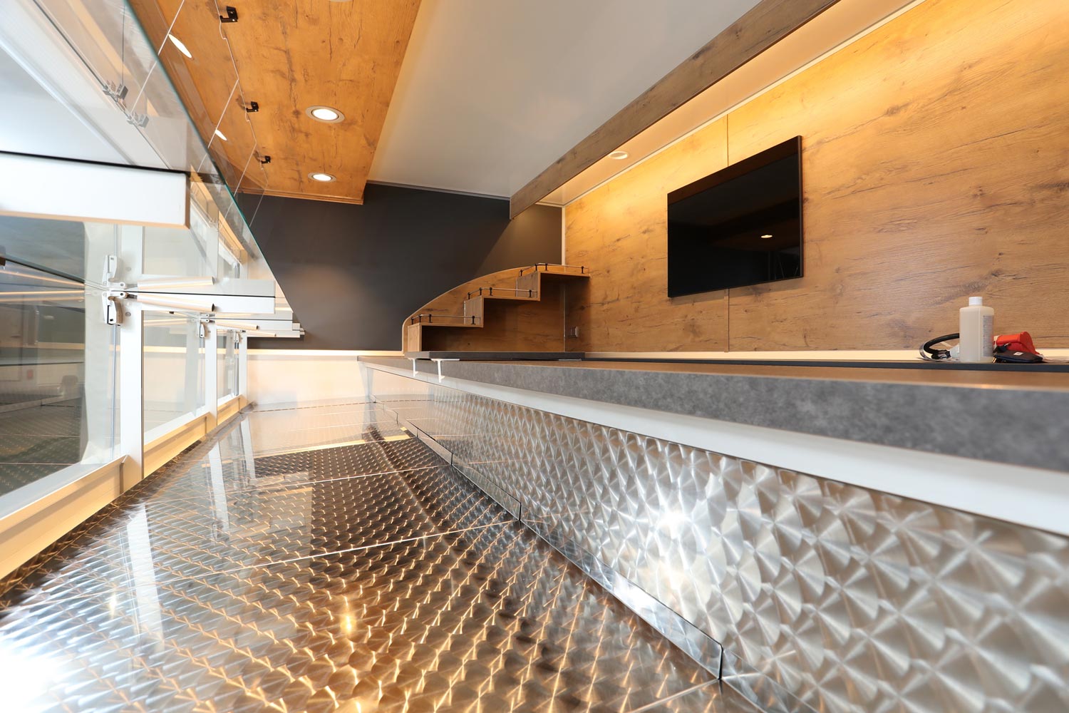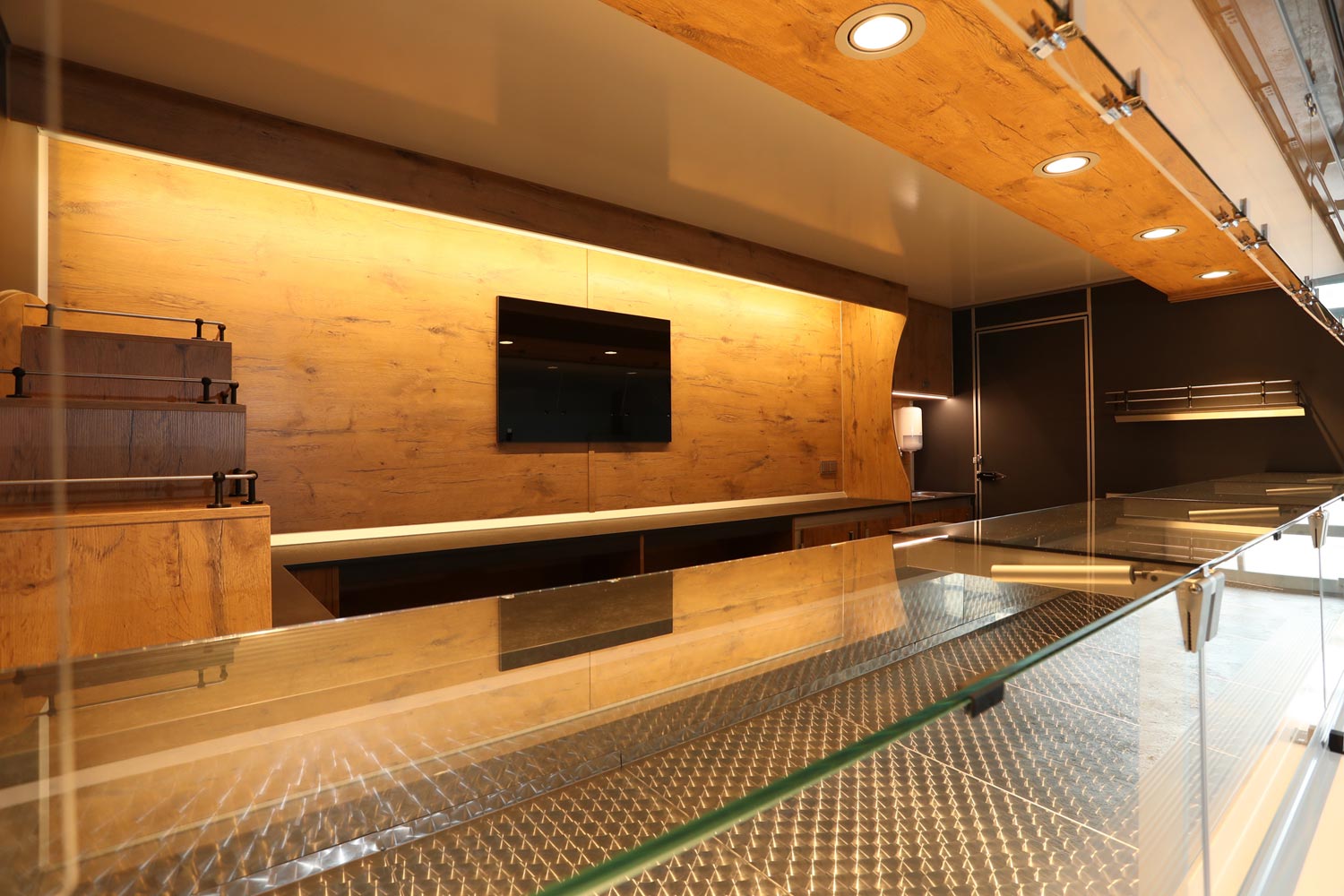stille Kühlung, 2 Kühlauszüge für 4 E-Kisten, Warentreppe, Wandregal, Windschutz in der Verkaufsöffnung, LED Beleuchtung und Glasschriftfeld