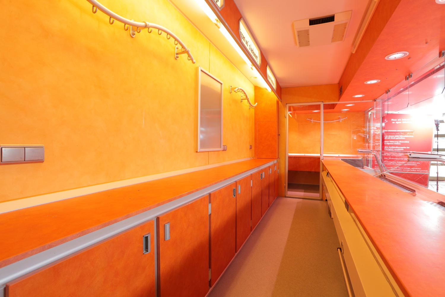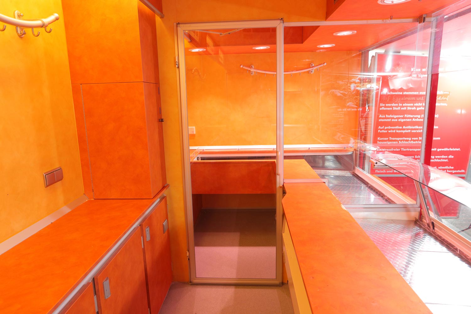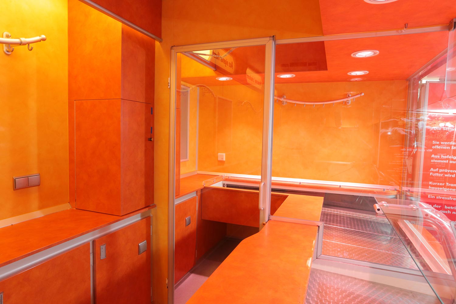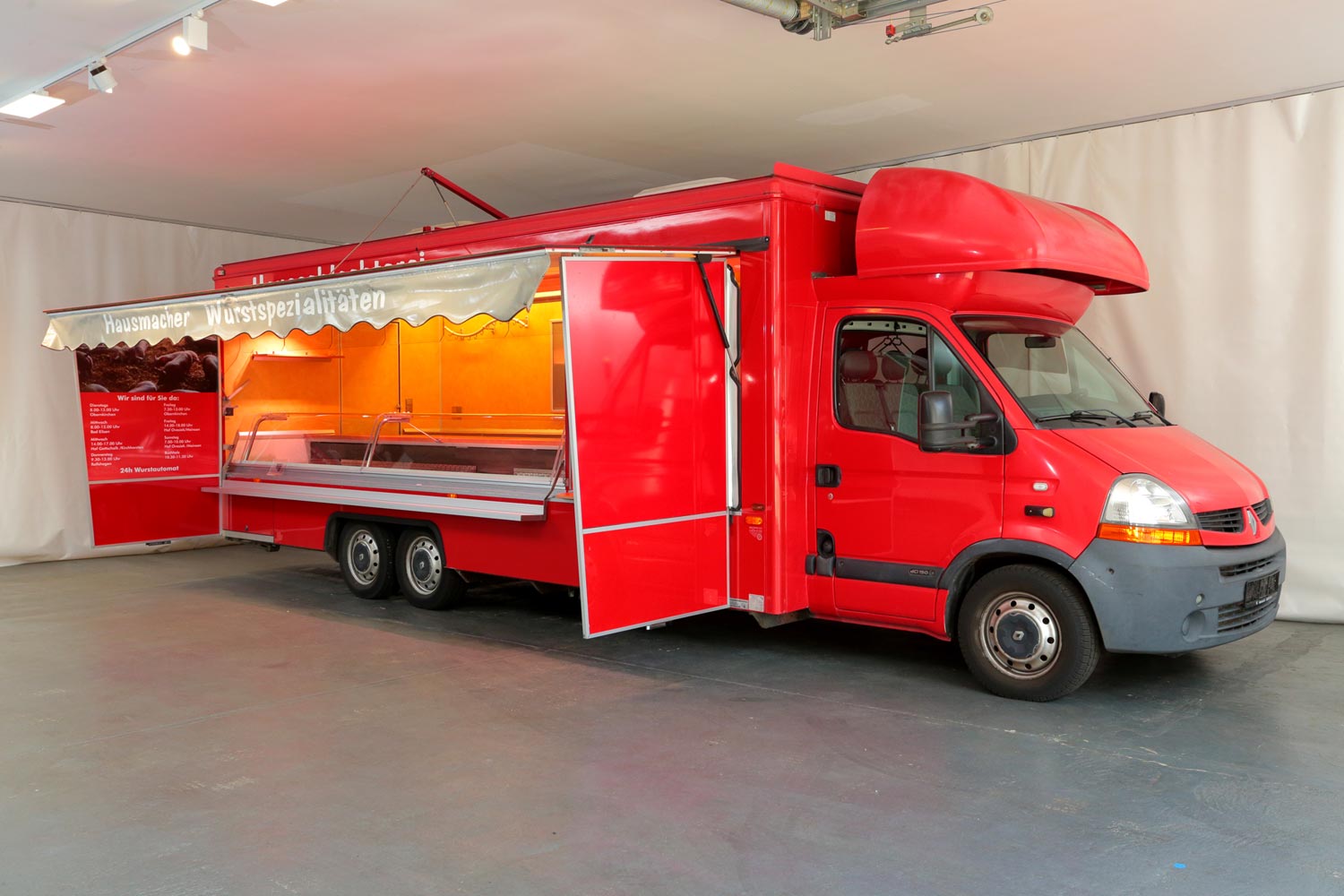 Gepflegtes Wochenmarkt Verkaufsmobil mit geringer Kilometerleistung. Panorama-Kühltheke mit verstärkter Kühlleistung 32°, 3 Kühlfächer und Bäro-Strahler über der Theke, separates Frischfleischabteil,  Anhängekupplung bis 2.000 kg, Gasheizung uvm.