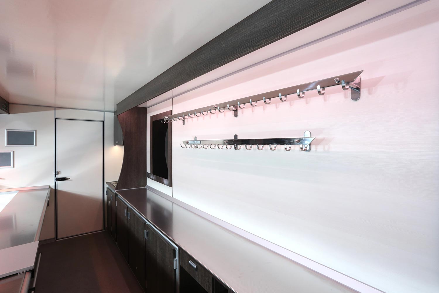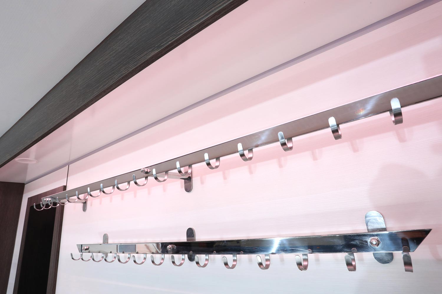 Warenpräsentation zusätzlich an Edelstahl-Hakenschienen möglich.