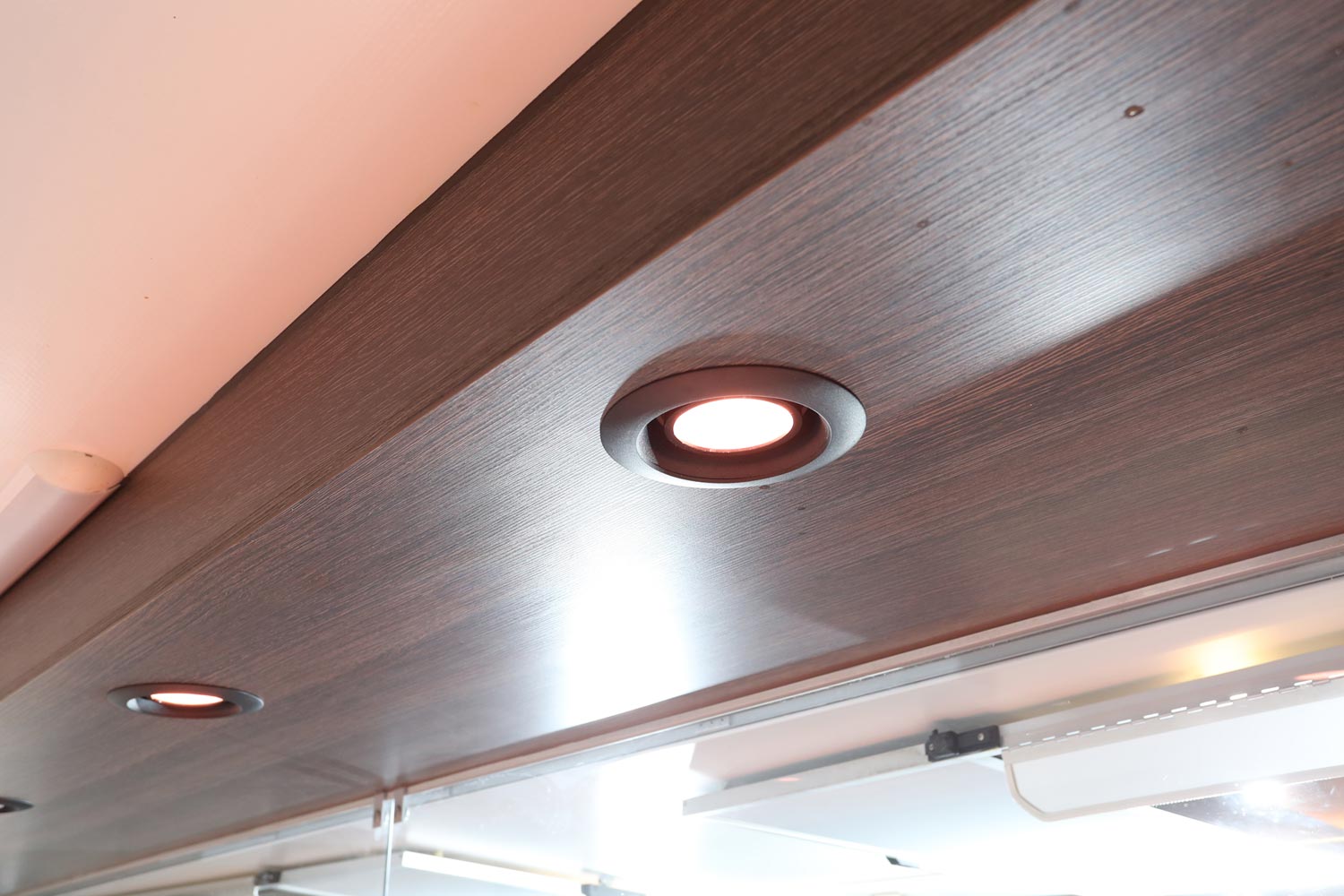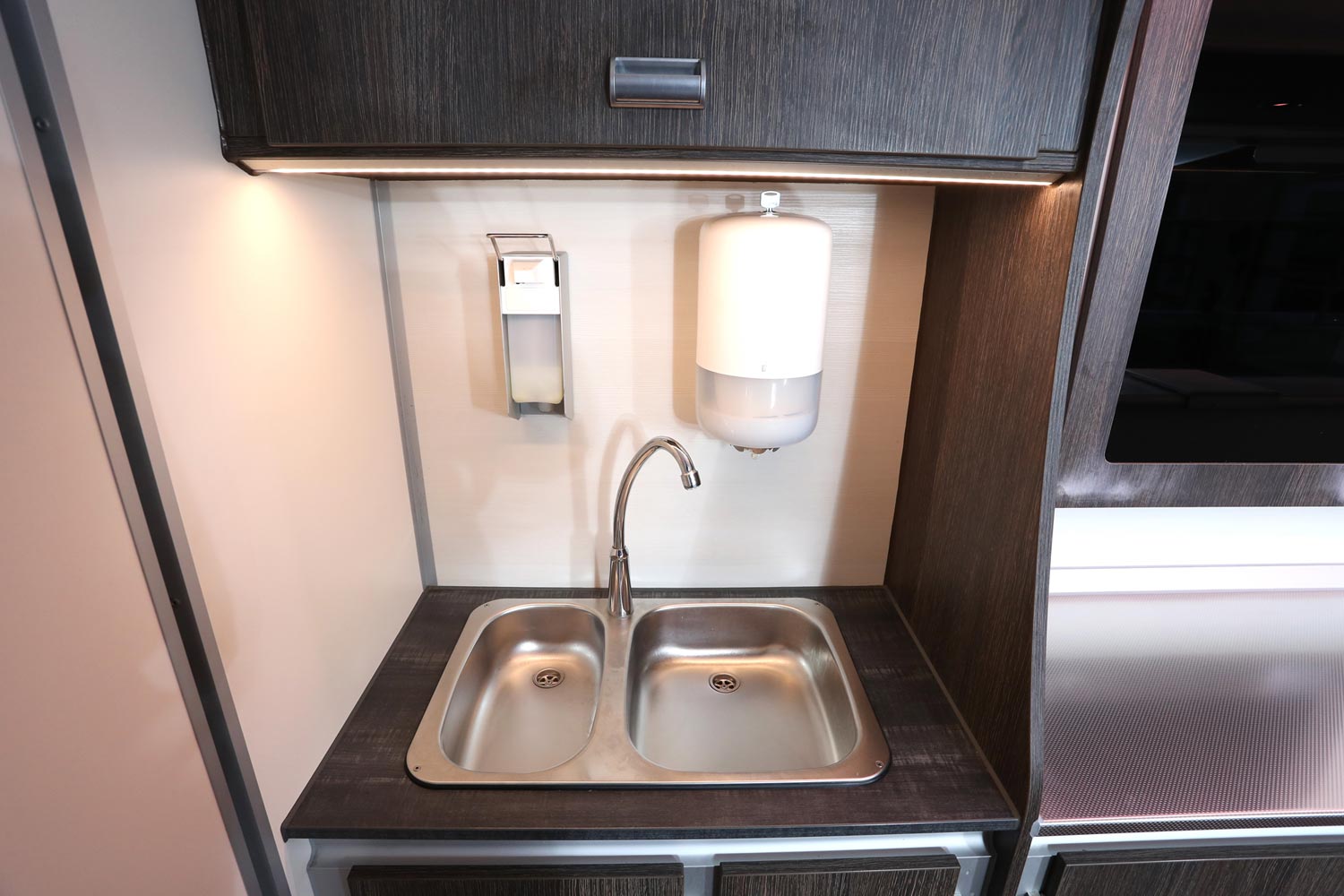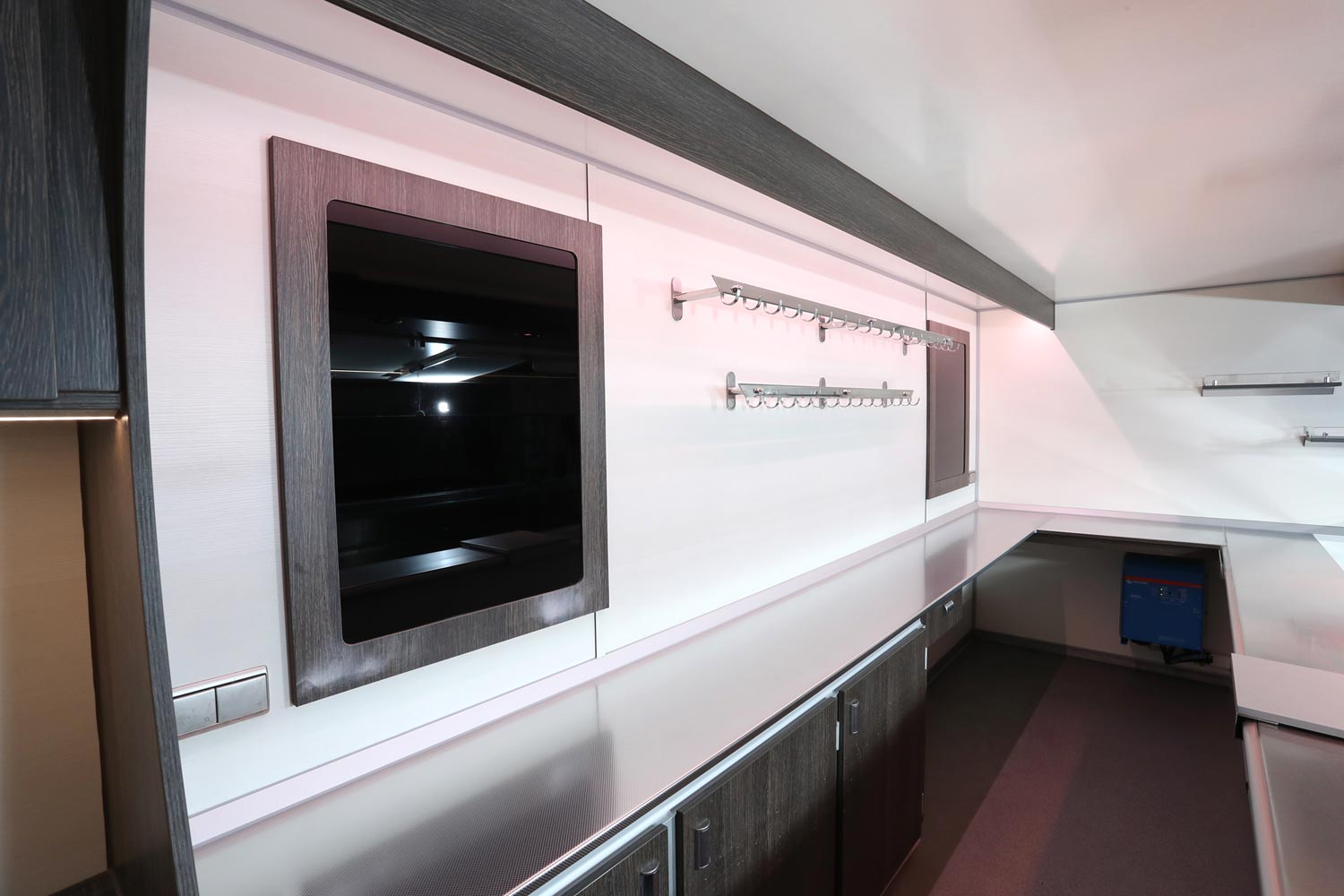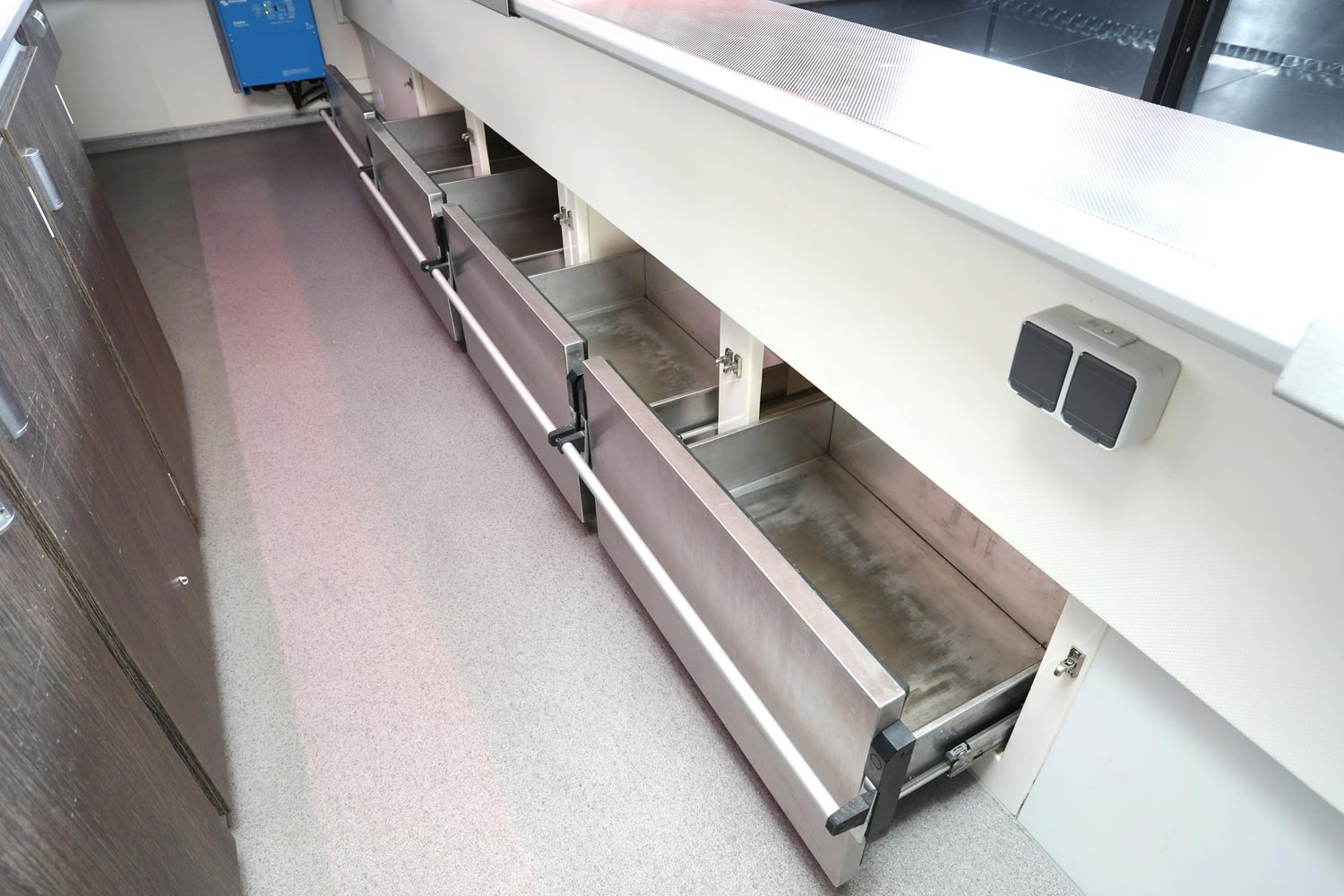 Rückseitig Stauraum im Unterschrank und auf der Arbeitsfläche.