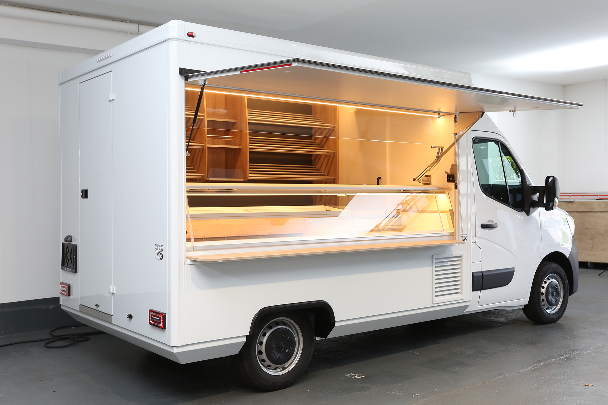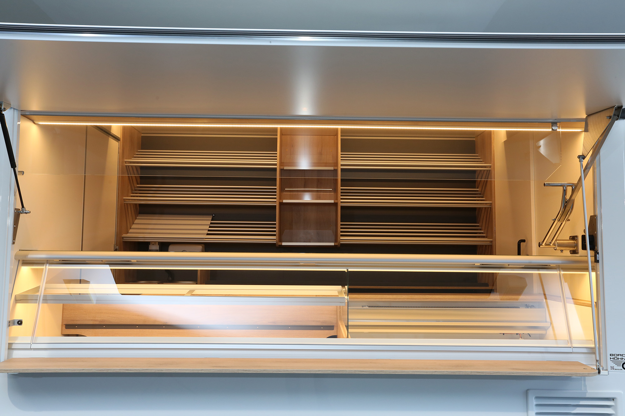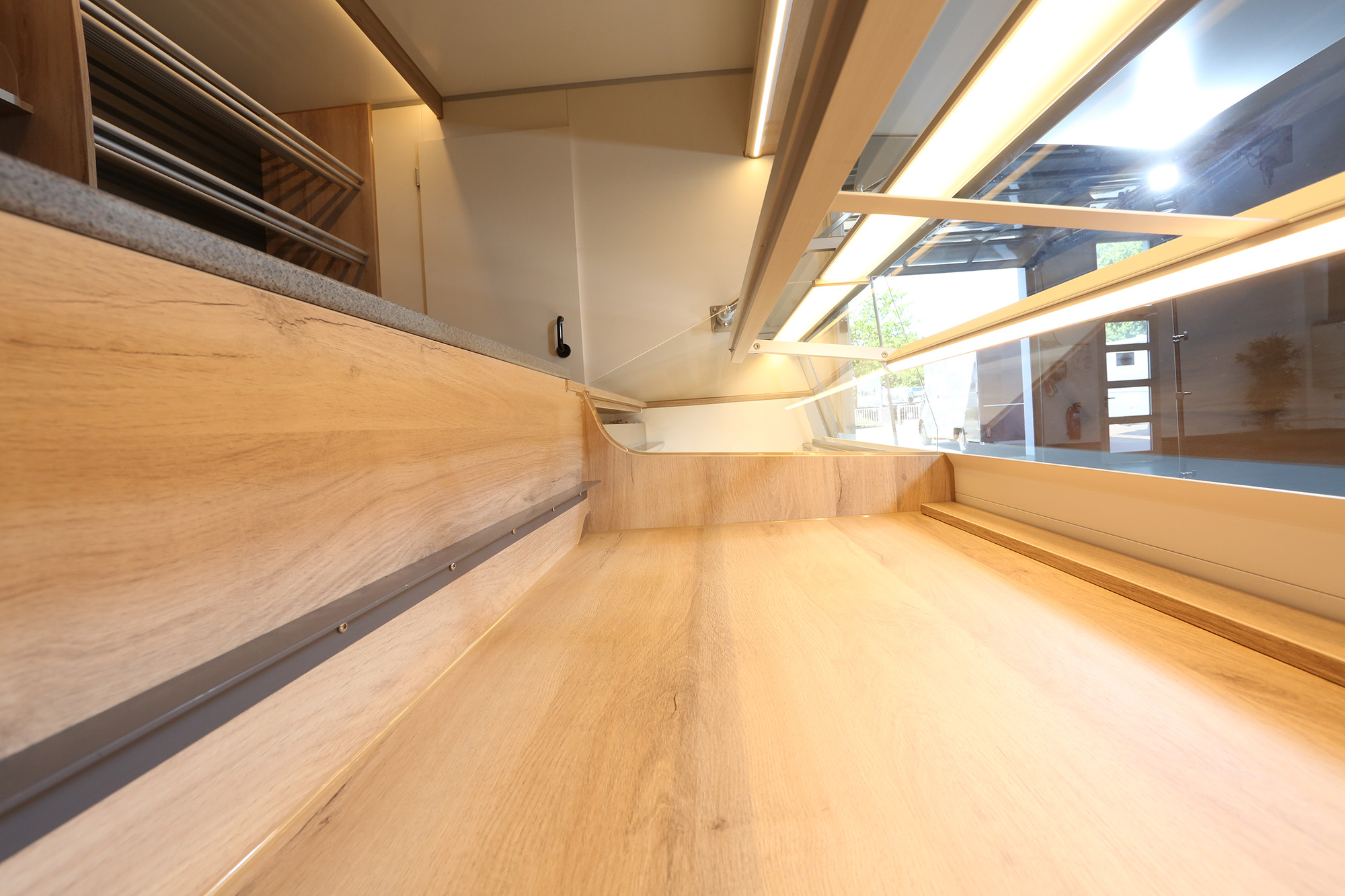 gekühlte Backwarentheke für 5 Bleche (davon 2 als Vorrat unterhalb), Nachschubregal für Bleche