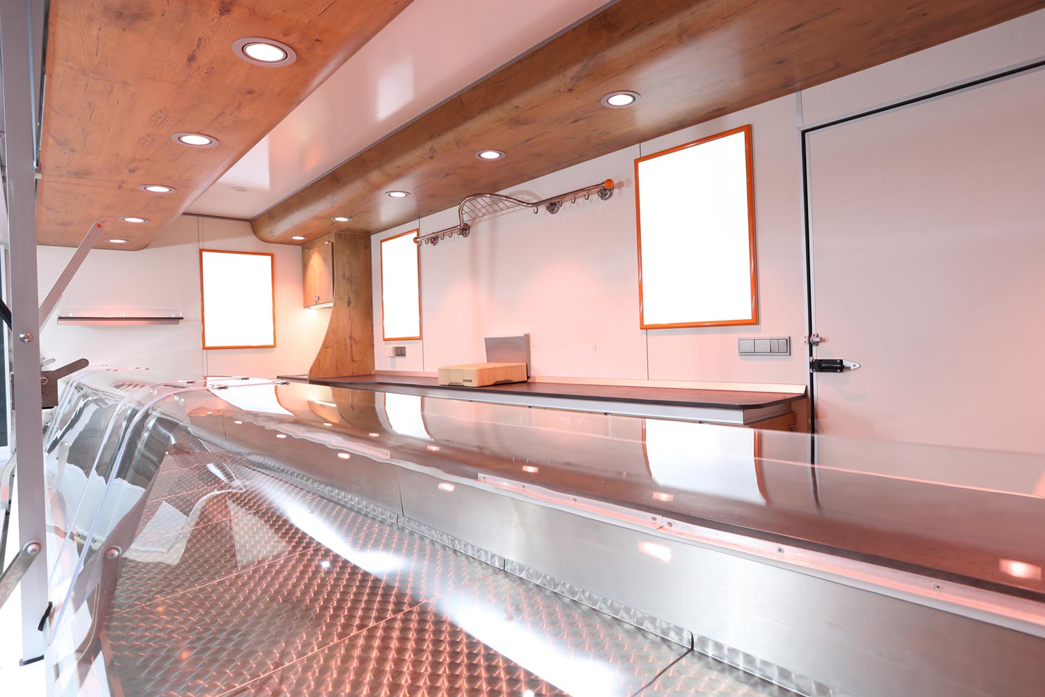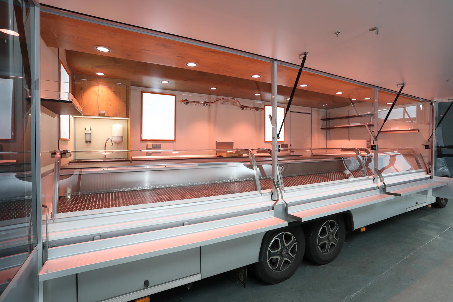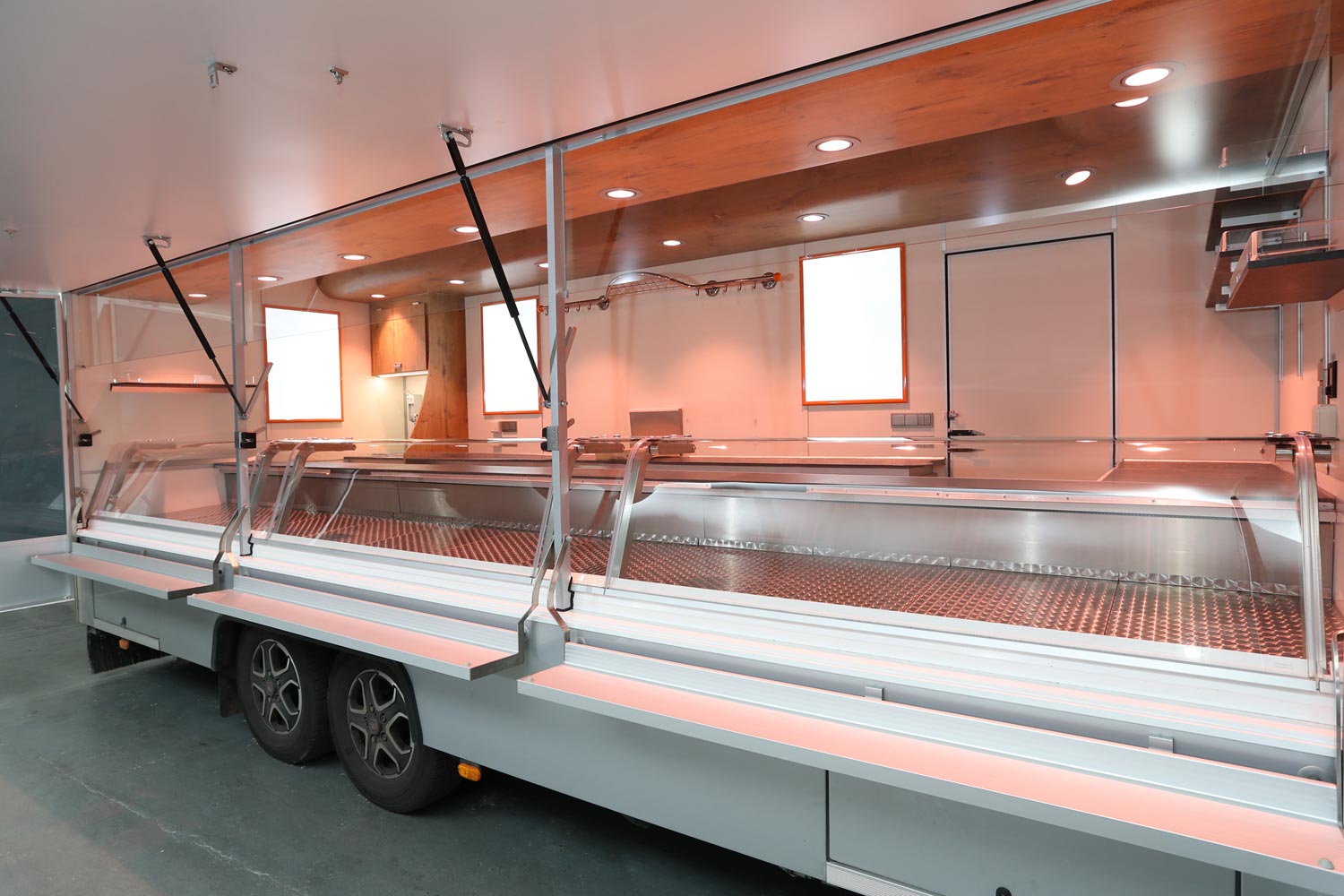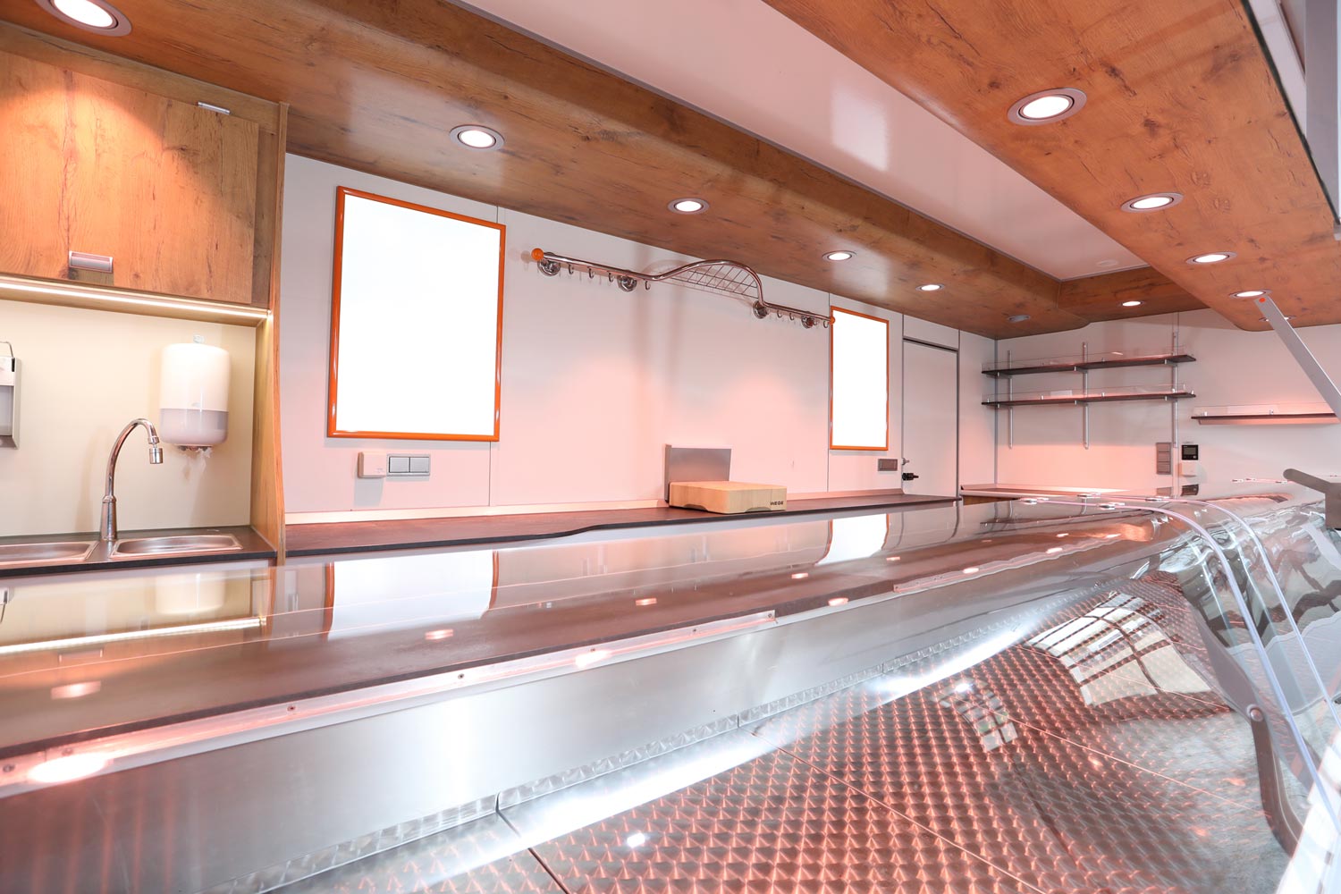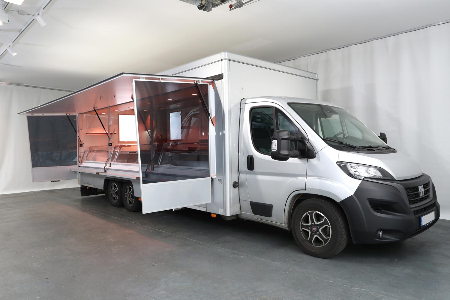 Jahreswagen - Sehr gepflegtes Wochenmarkt-Verkaufsmobil mit verstärkter Kühlleistung und Panorama-Kühltheke, viel Vorratskühlung, LED-Beleuchtung und Gasheizung. Metalliclackierung, FIAT mit Sonderausstattung uvm.