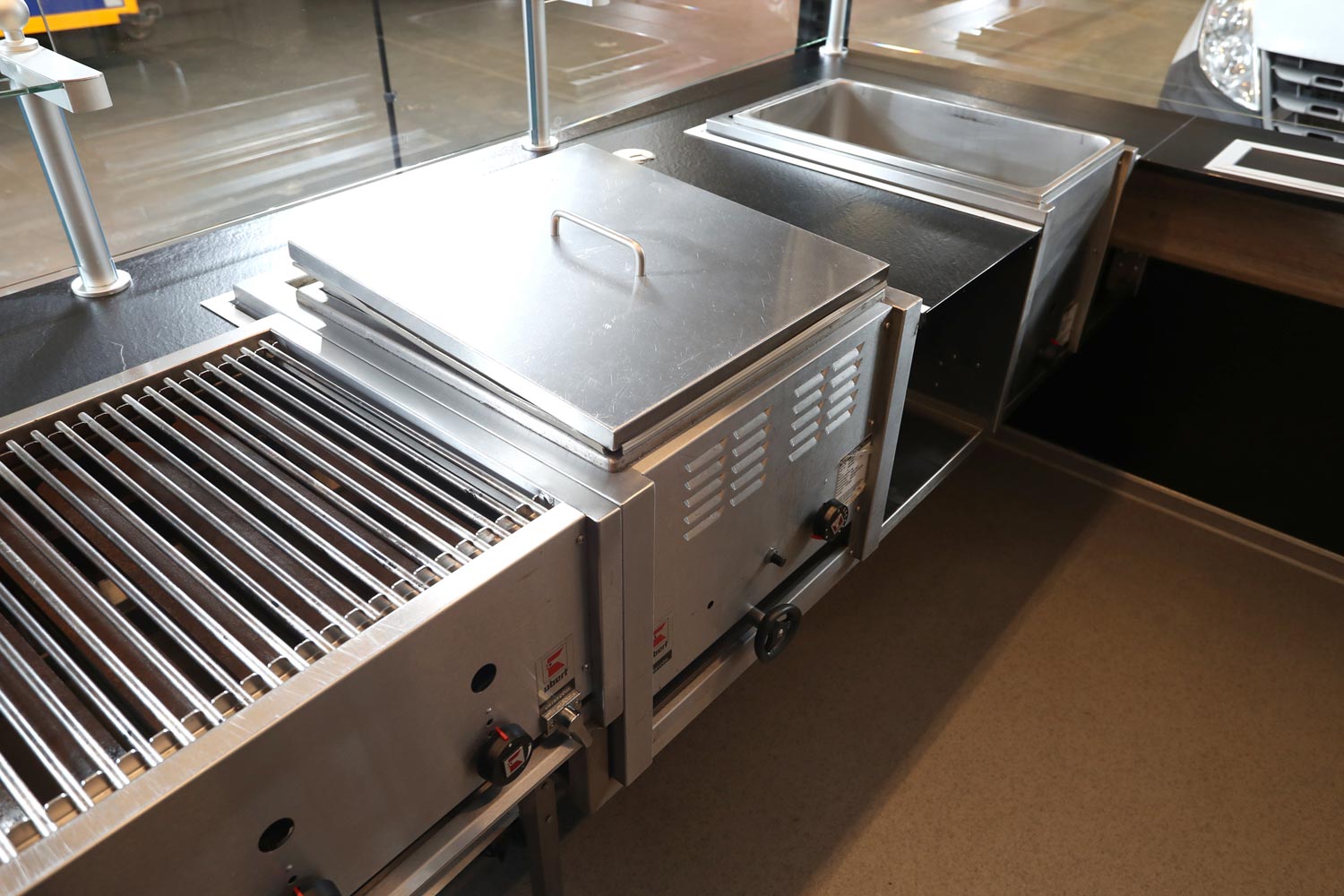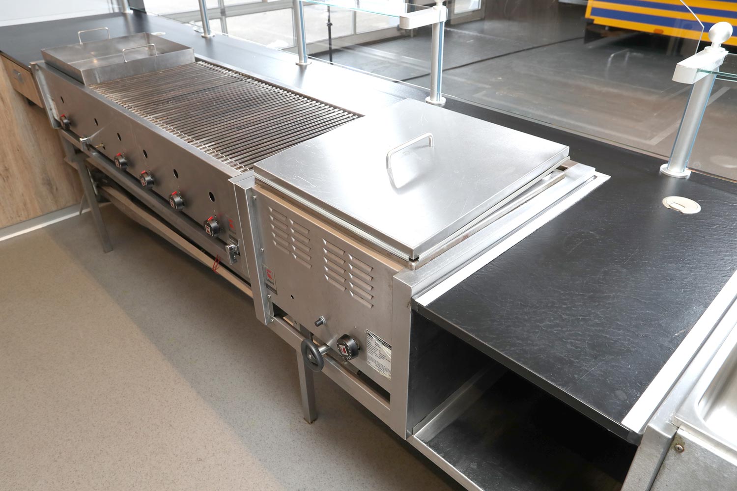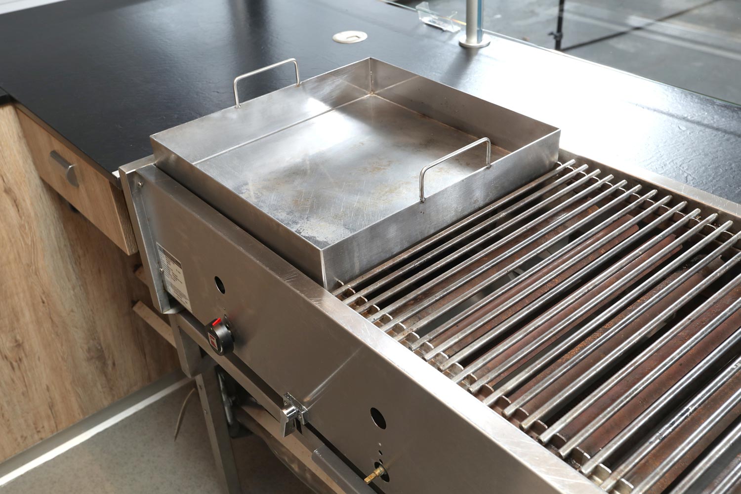 Bratgerät 1400 mm mit integrierter Wurst- & Schaschlikpfanne.