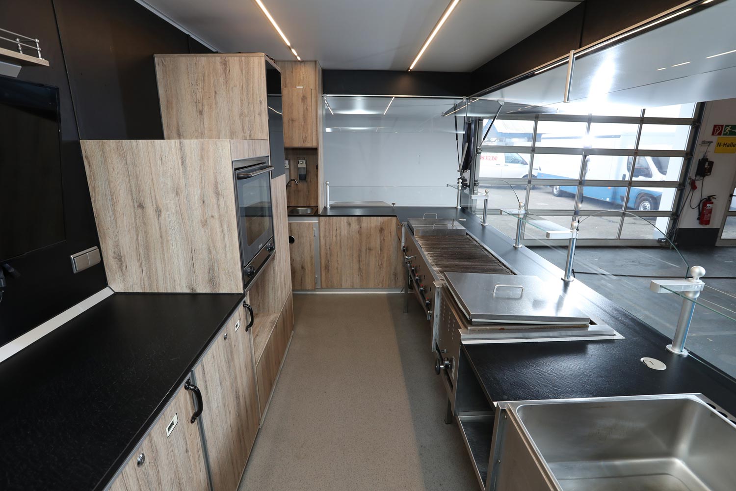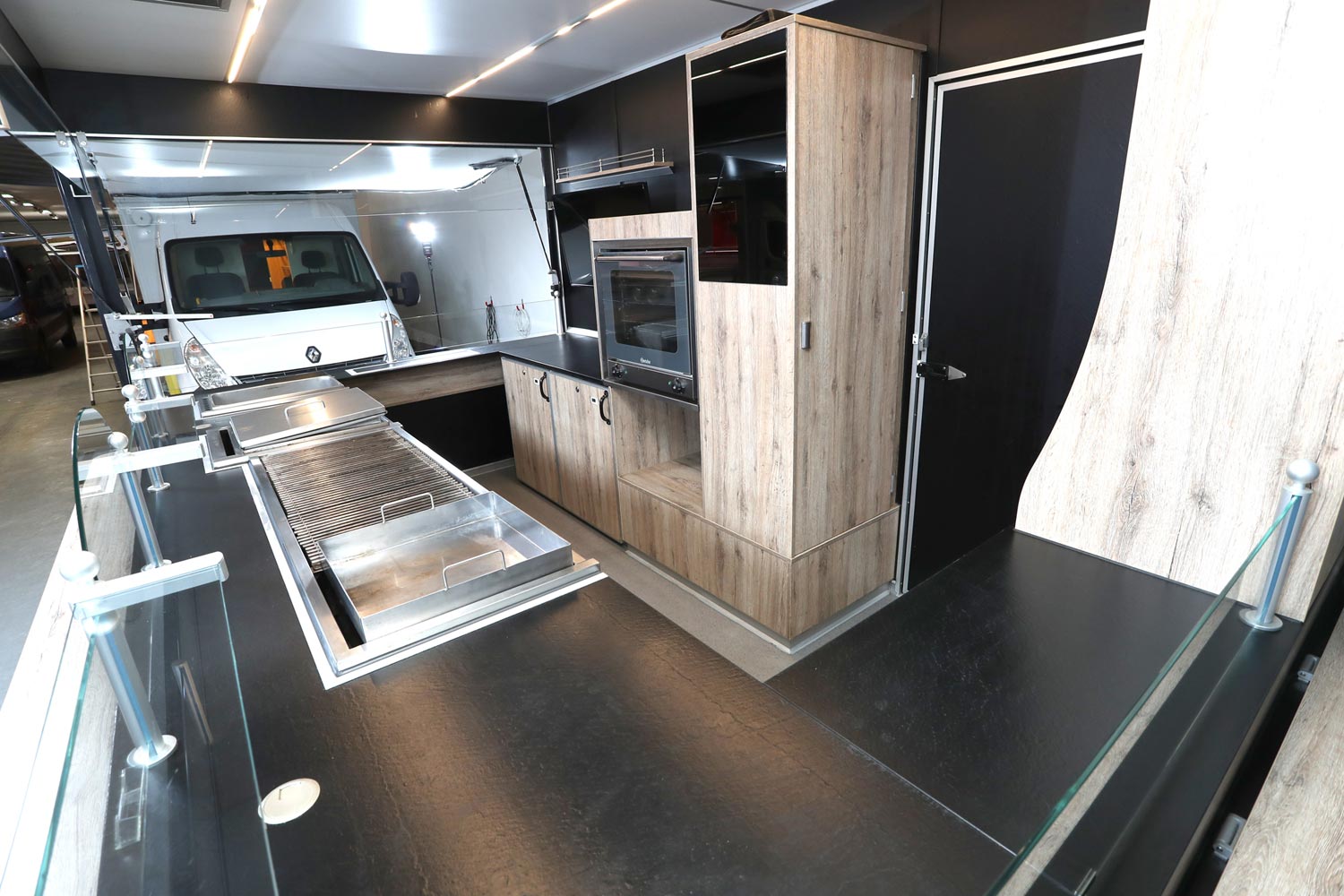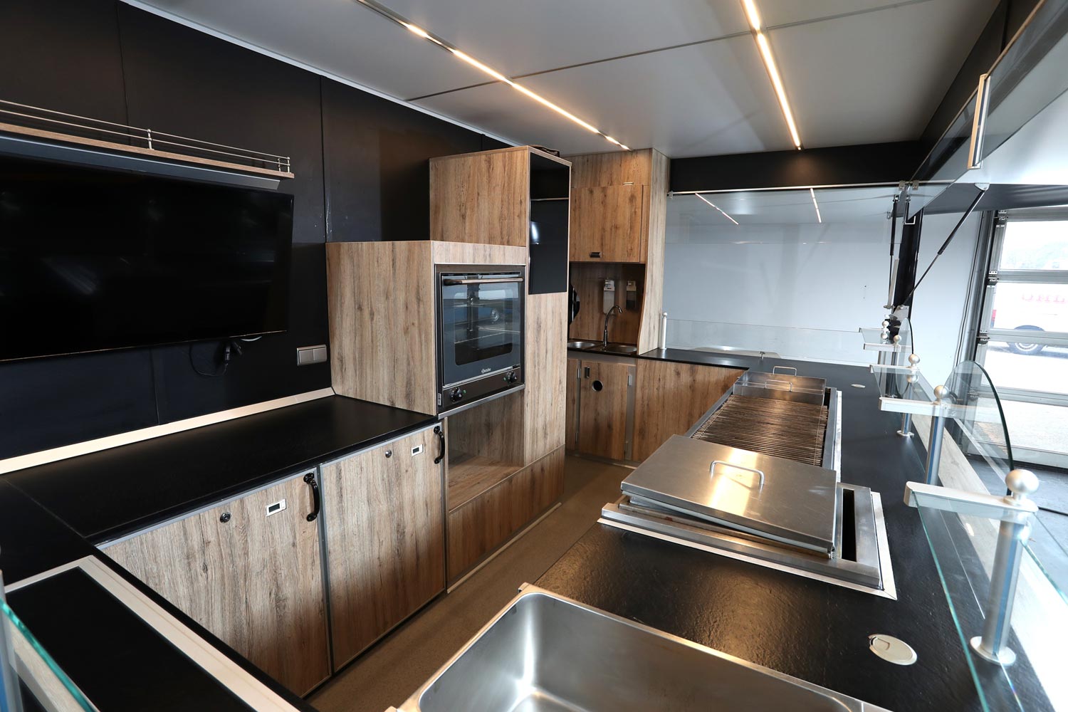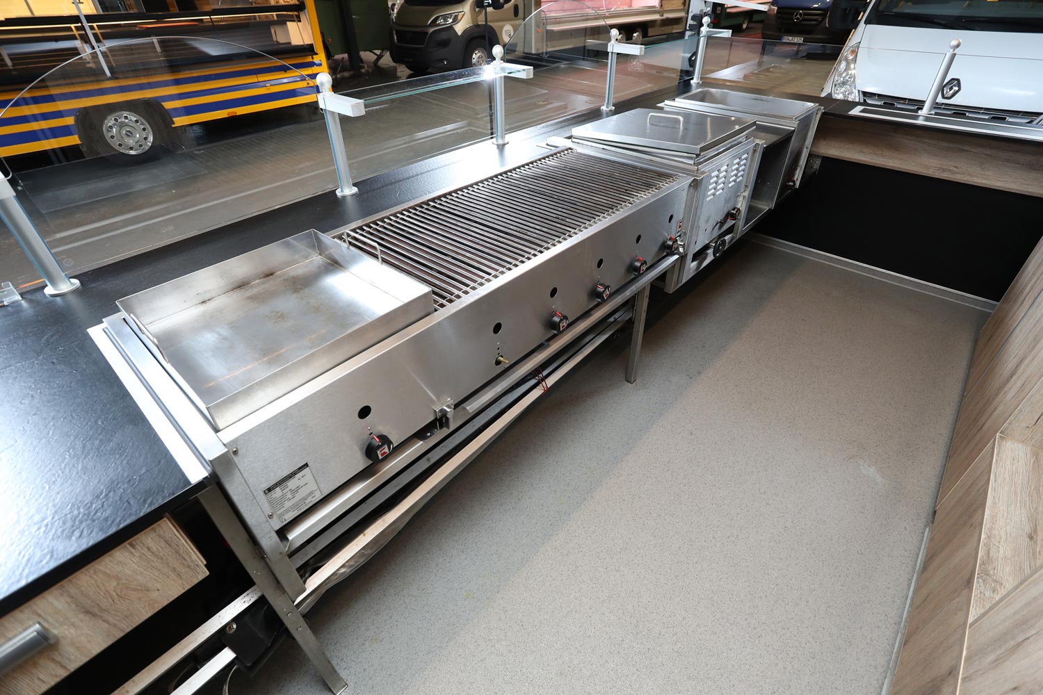 Bratgerät 1400 mm mit integrierter Wurst- & Schaschlikpfanne.