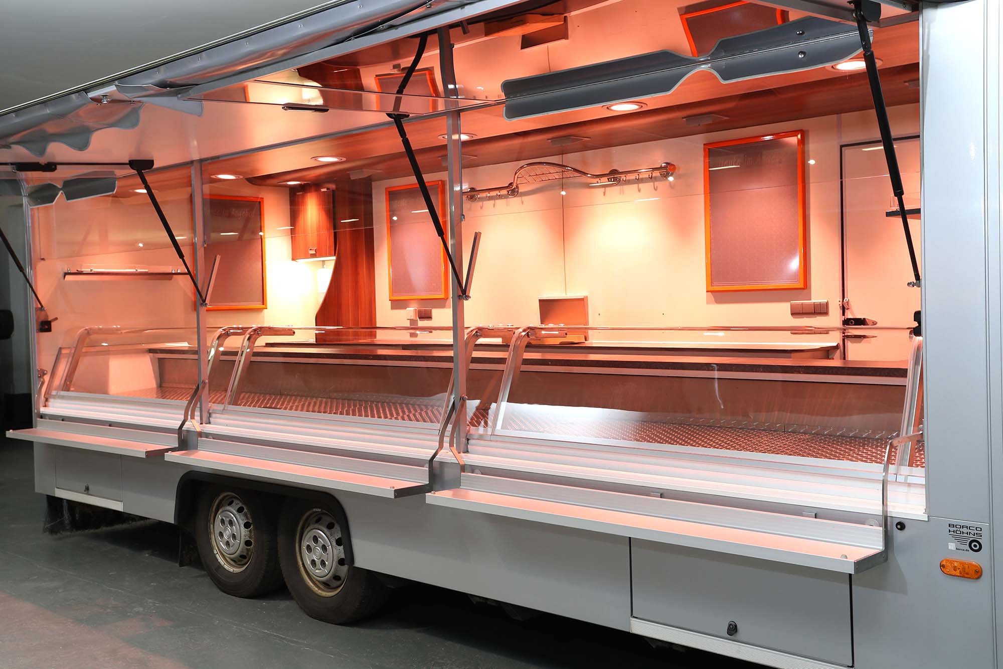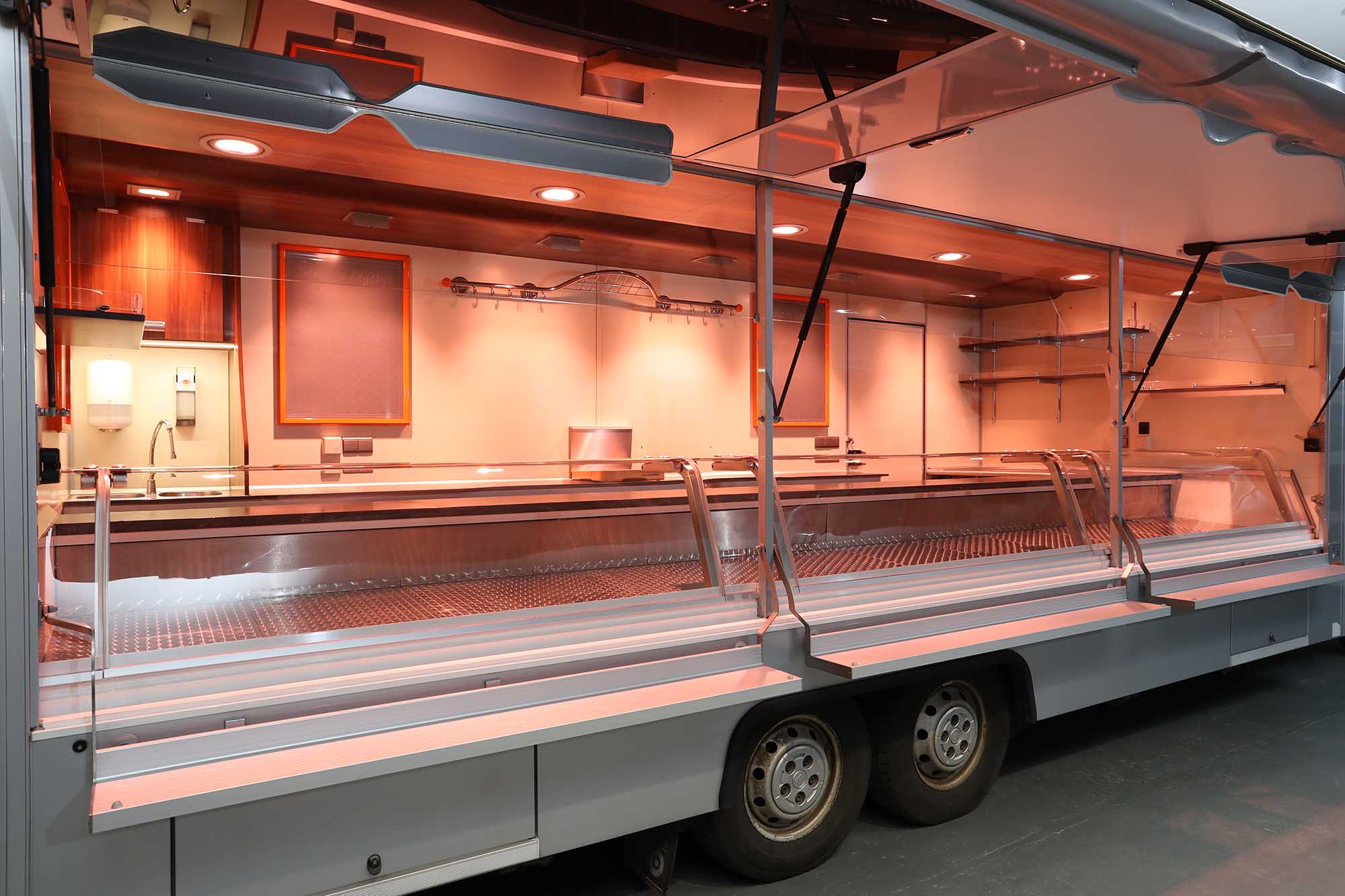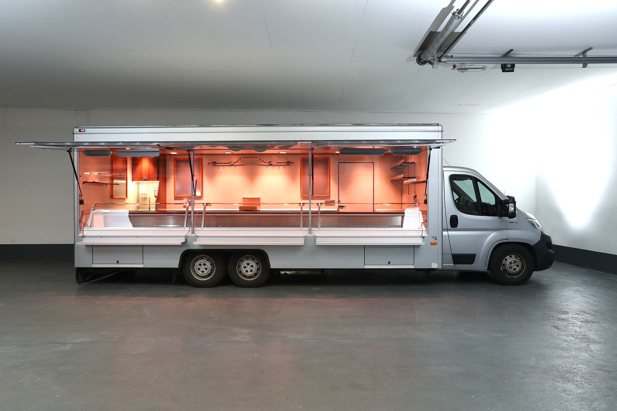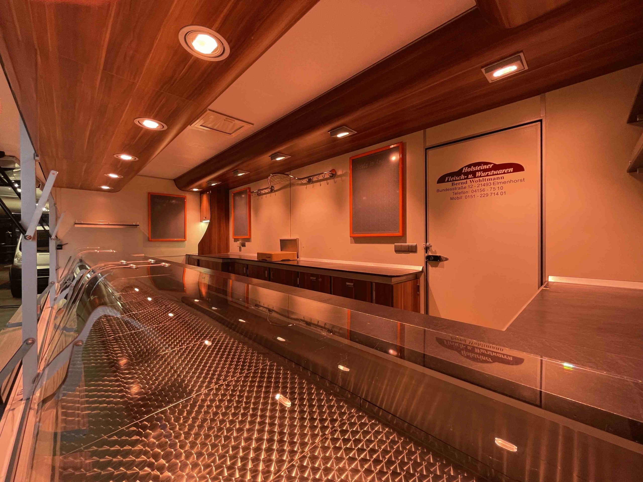 Gepflegtes Wochenmarkt Verkaufsmobil. Panorama-Kühltheke mit verstärkter Leistung 32°, 4 Kühlfächer, 1 Kühlschrank, BÄRO LED-Strahler, Stromerzeuger für den Notbetrieb, Gasheizung, Alu-Seitenblenden, Metalliclackierung, Fiat mit Klimaautomatik, Rückfahrkamera, Radio Beifahrerdoppelsitzbank uvm.