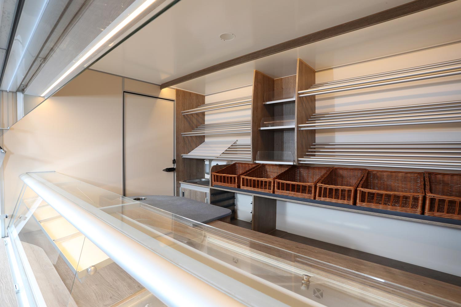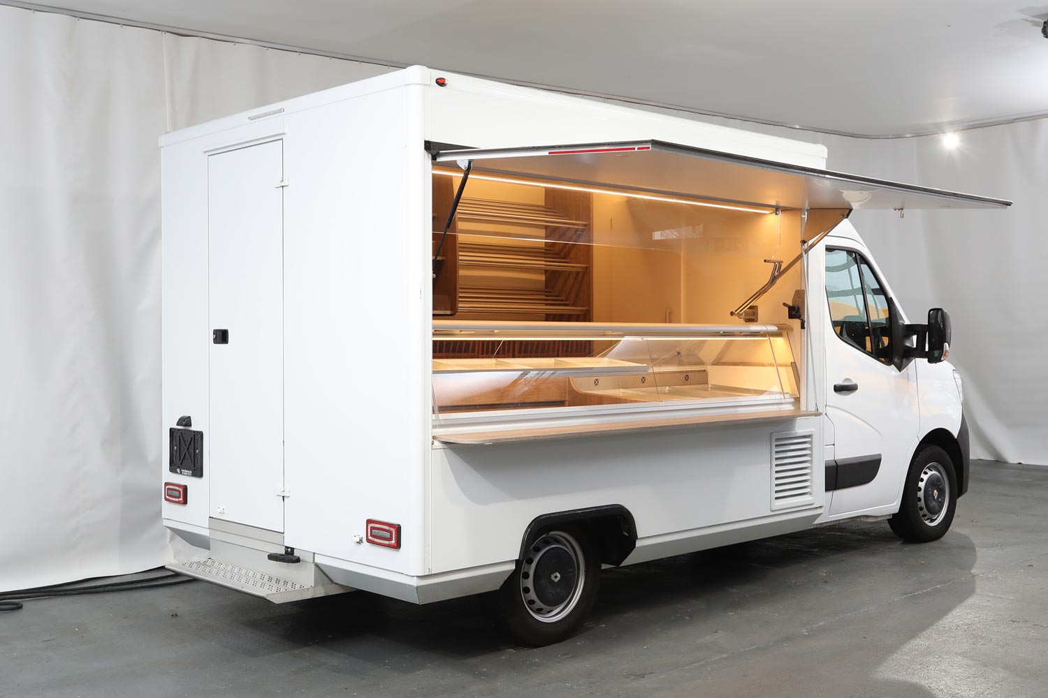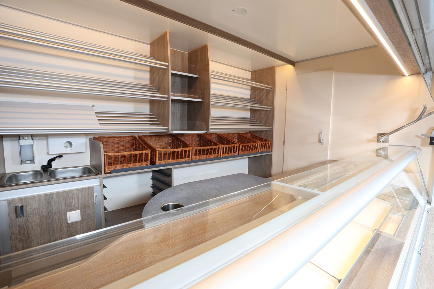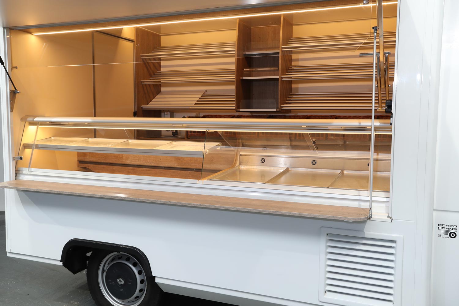 Gepflegtes Backwarenverkaufsmobil mit geringer Laufleistung, für den Tourenverkauf mit einer Verkaufsraumlänge von 2,90m. Kühltheke mit Speicherkühlung, neueste LED-Lichttechnik mit hoher Lichtleistung, Aluminium-Brotborde über 3 Etagen, Lithium-Ionen-Batterie-Technik,