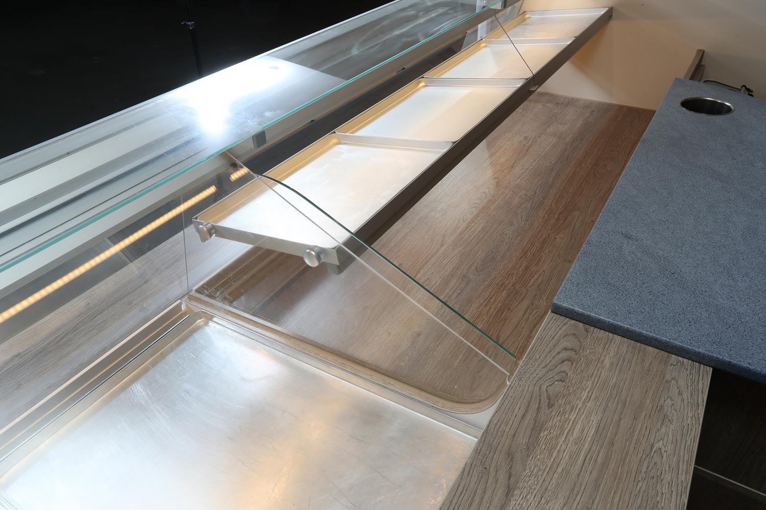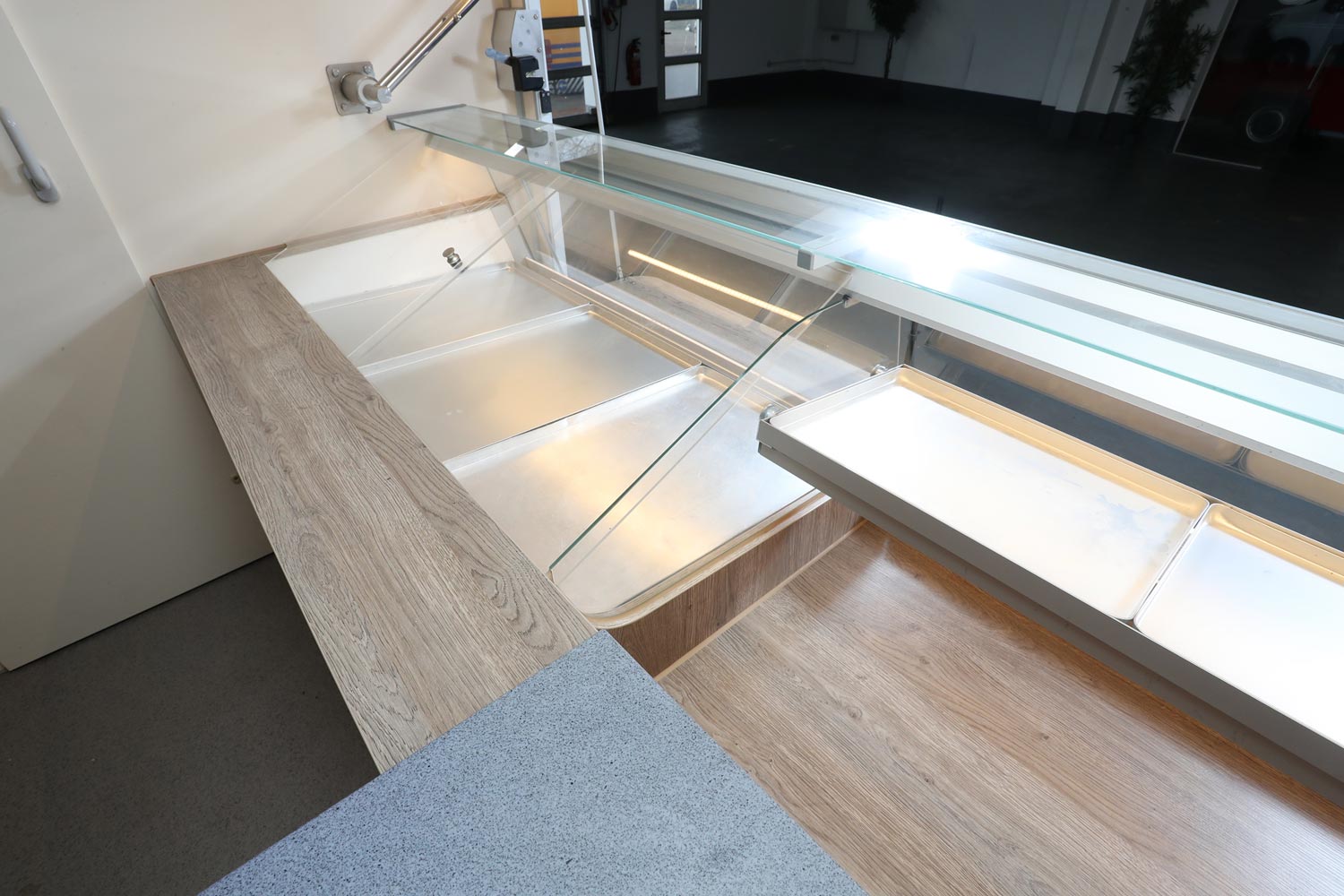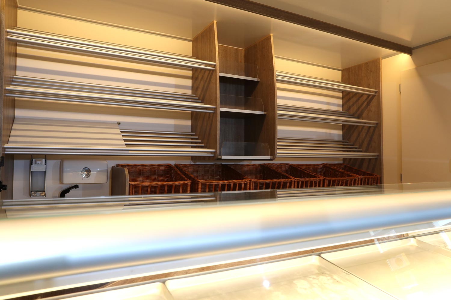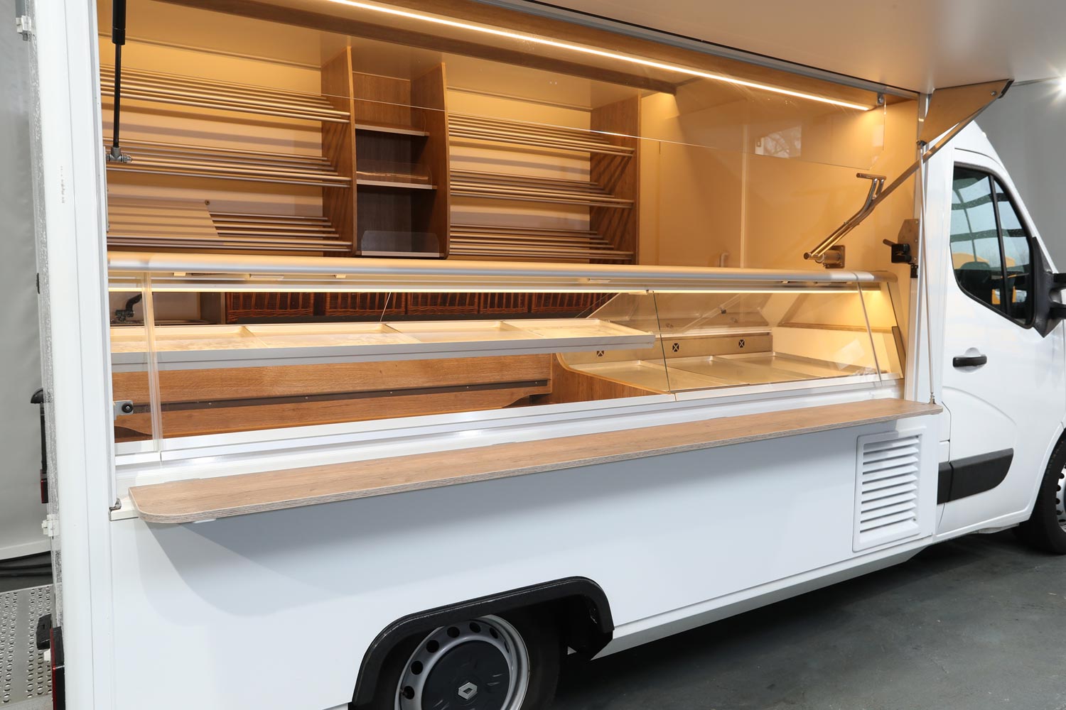 Gepflegtes Backwarenverkaufsmobil mit geringer Laufleistung, für den Tourenverkauf mit einer Verkaufsraumlänge von 2,90m. Kühltheke mit Speicherkühlung, neueste LED-Lichttechnik mit hoher Lichtleistung, Aluminium-Brotborde über 3 Etagen, Lithium-Ionen-Batterie-Technik,
