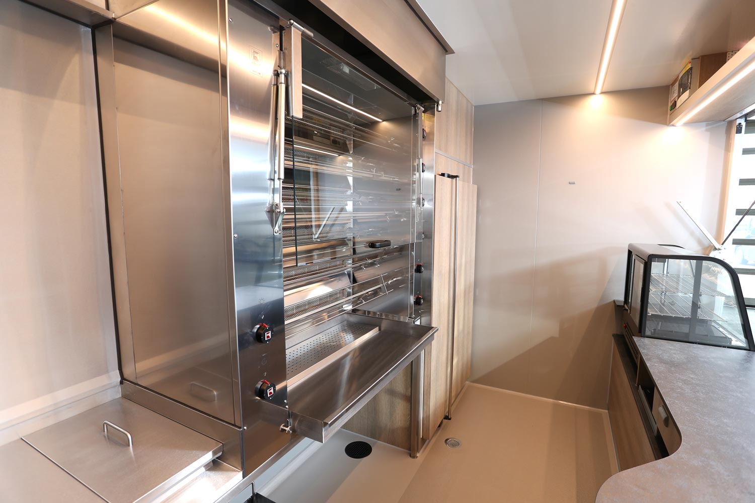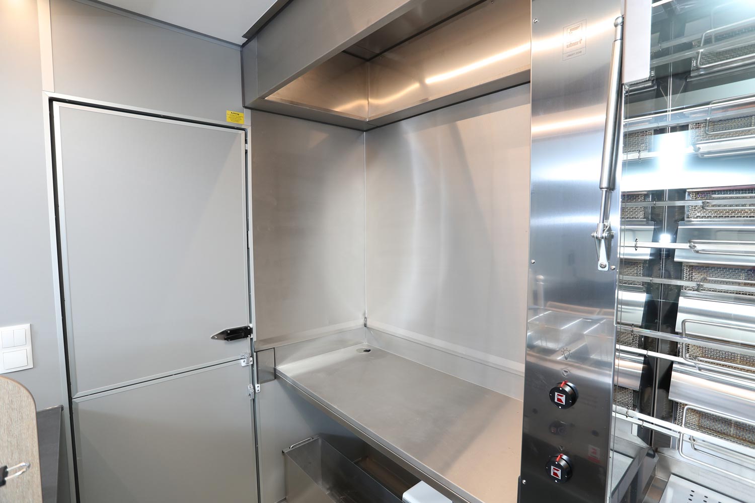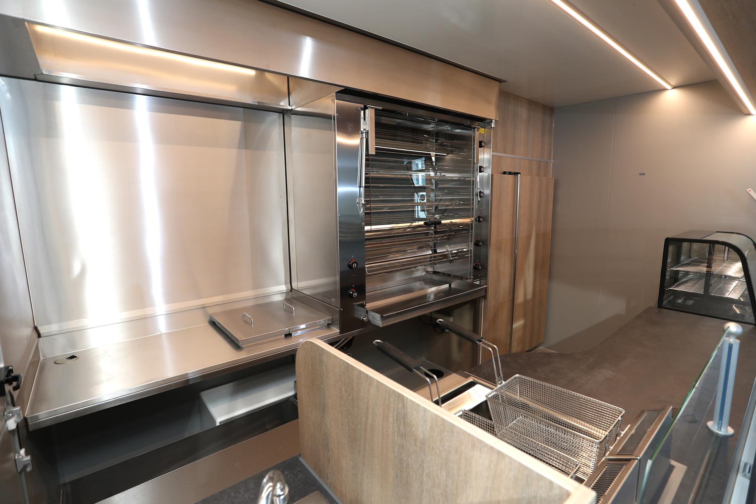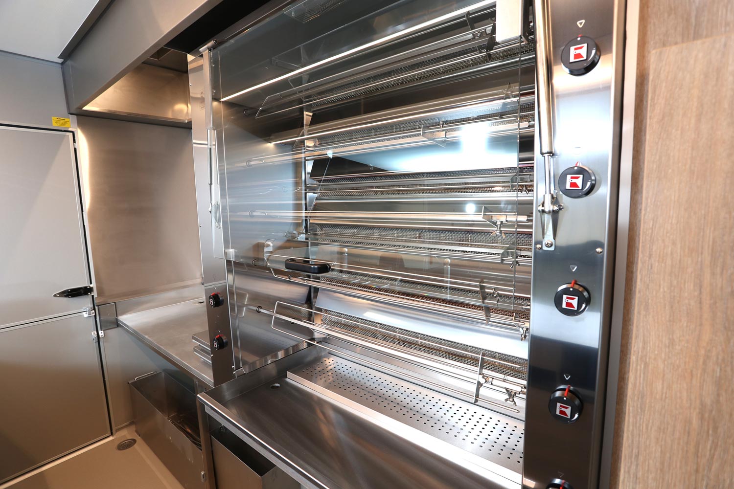 Infrarot Hähnchengrill, Doppelfritteuse mit Deckel, Rostgrill, Hochkühlschrank für Grillspieße, Kühlschauvitrine