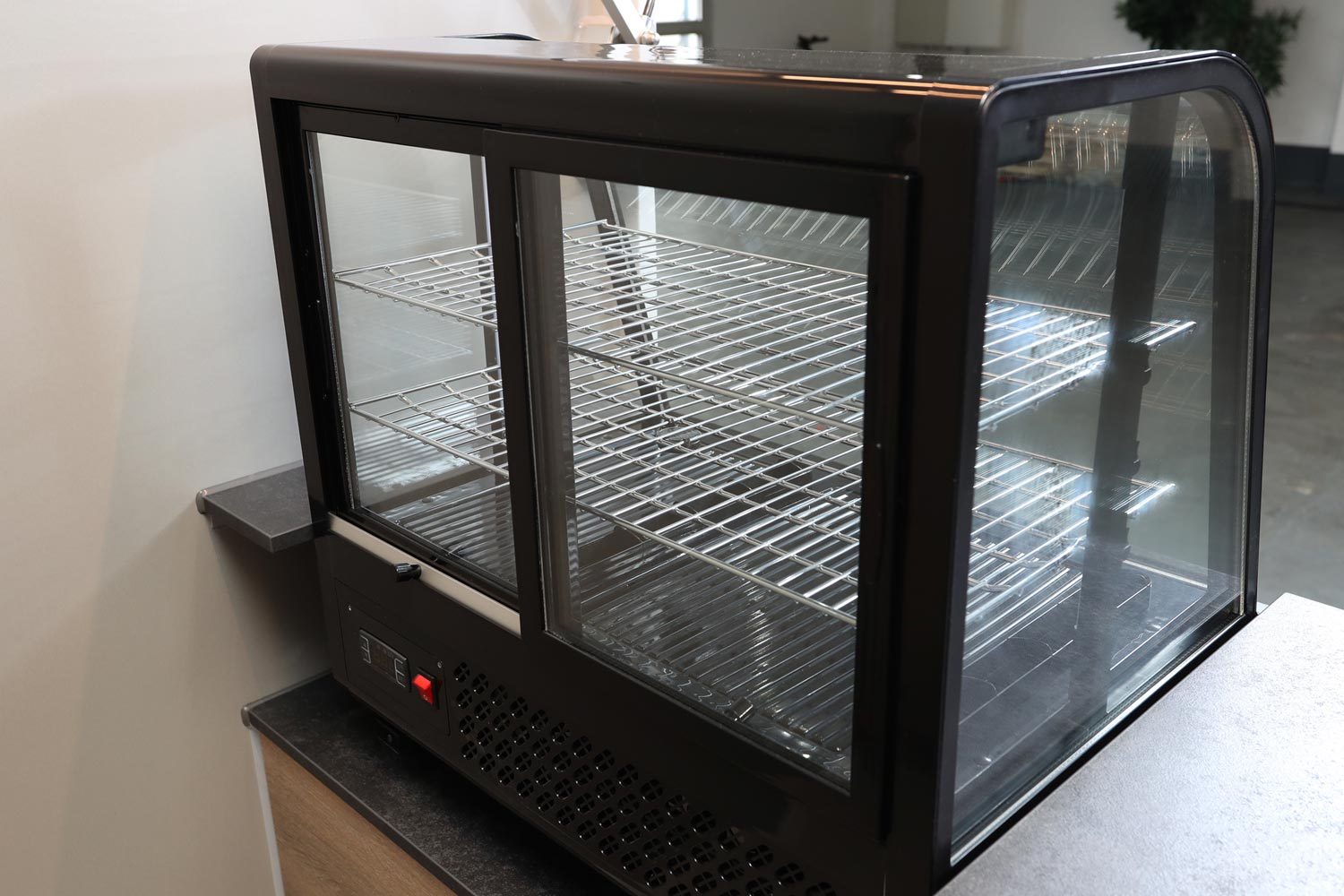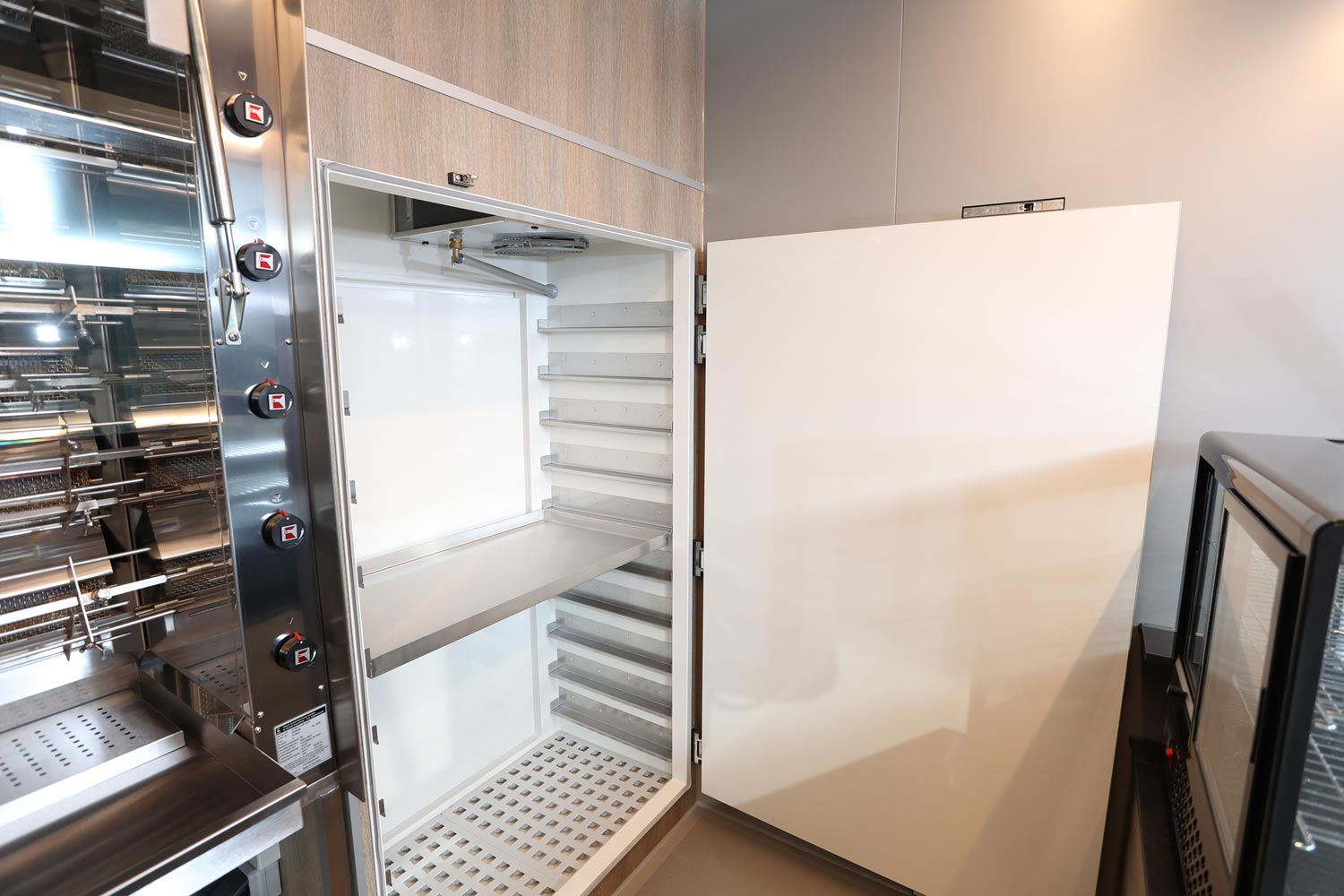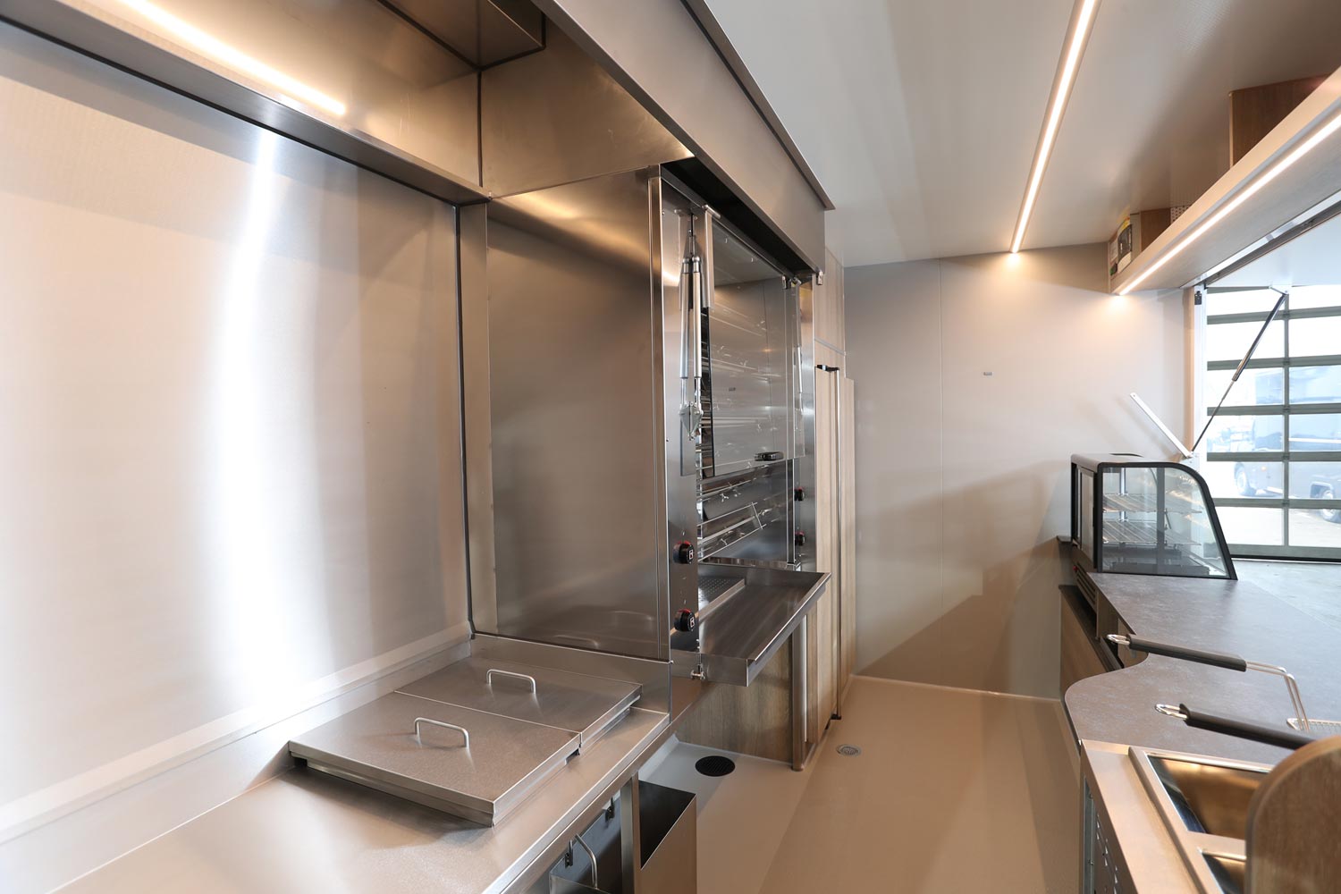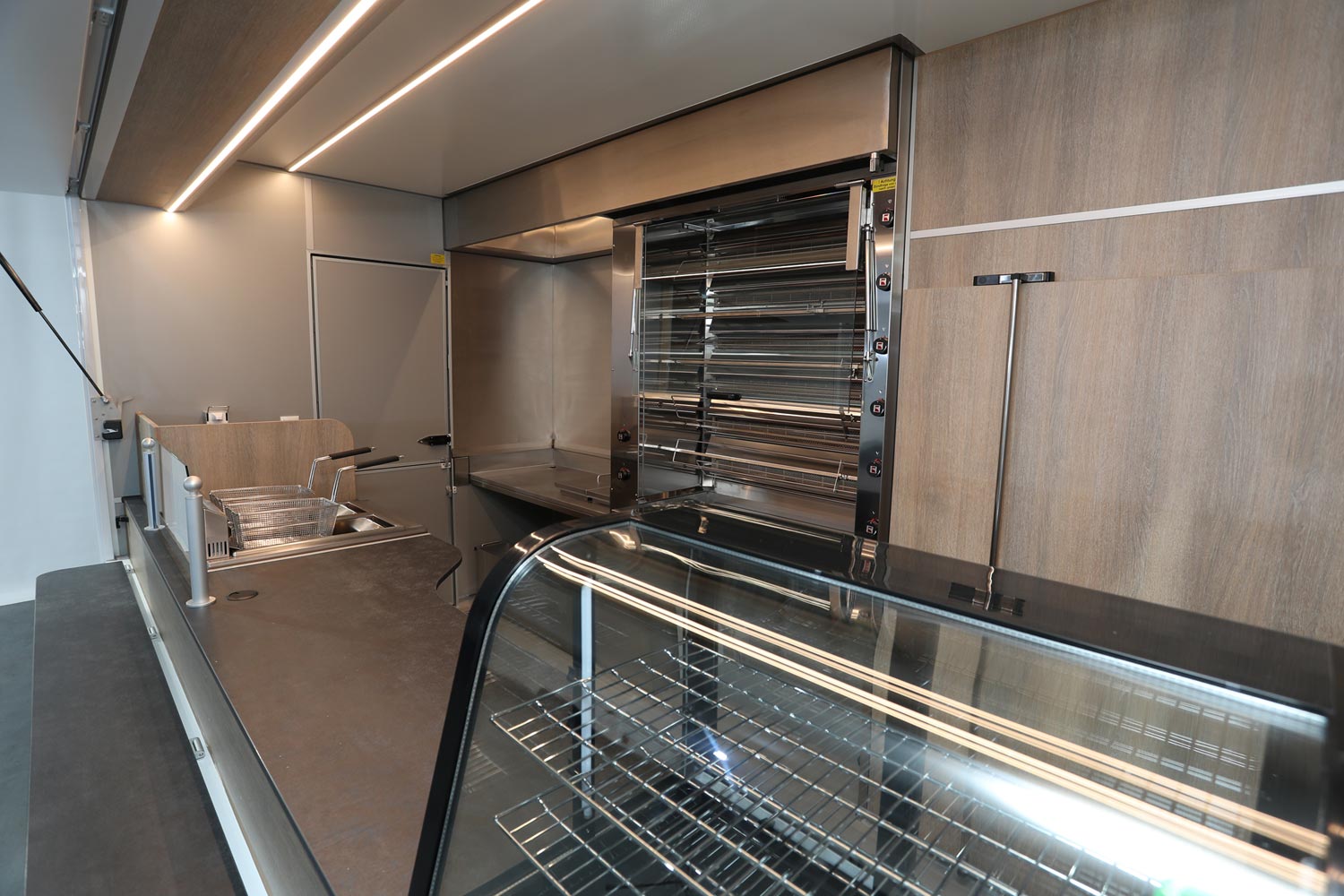 Infrarot Hähnchengrill, Doppelfritteuse mit Deckel, Rostgrill, Hochkühlschrank für Grillspieße, Kühlschauvitrine