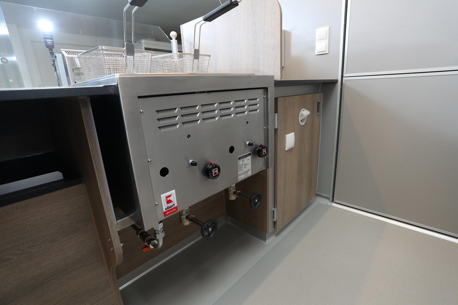 230 Volt Stromanschluss, Gastank für 110 Liter.