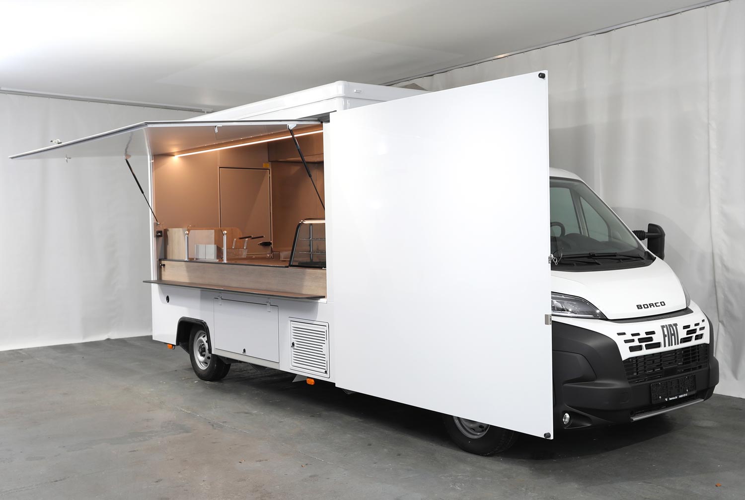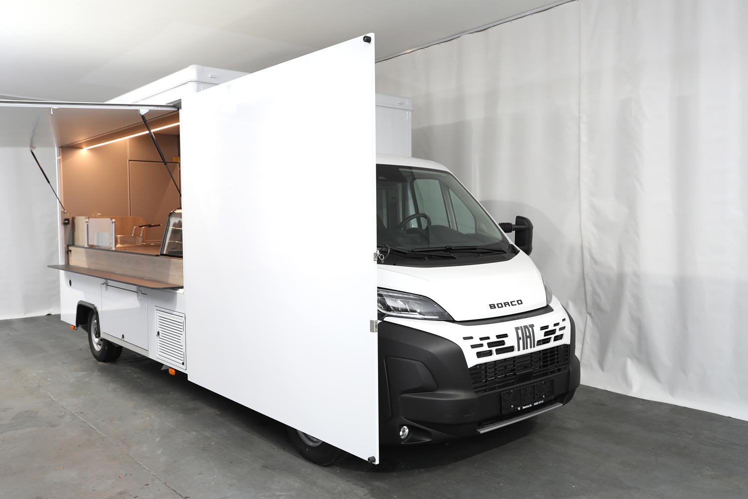 Fiat Ducato mit Allwetterbereifung, Klimaanlage und Rückfahrkamera.
