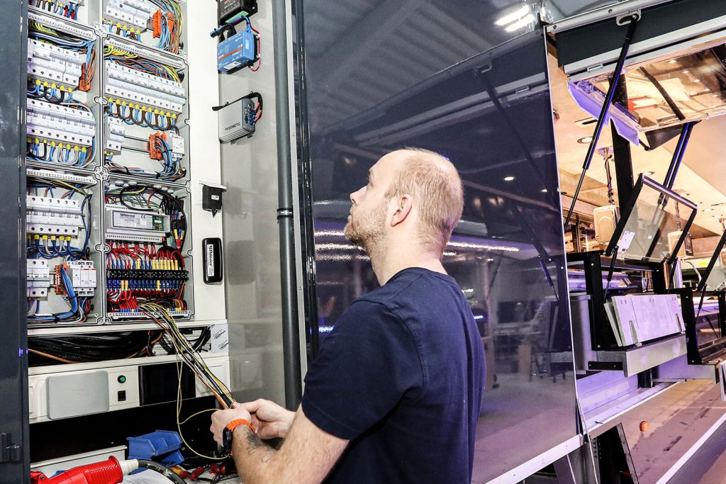 „Wir als Elektriker arbeiten mit allen Bereichen eng zusammen – dass ist das, was Spaß macht. Denn so ist der Alltag immer vielseitig und nie langweilig. Man kann sich austoben, jede Idee ist willkommen. Und jeder hilft dem oder der anderen, beim Umsetzen.“
